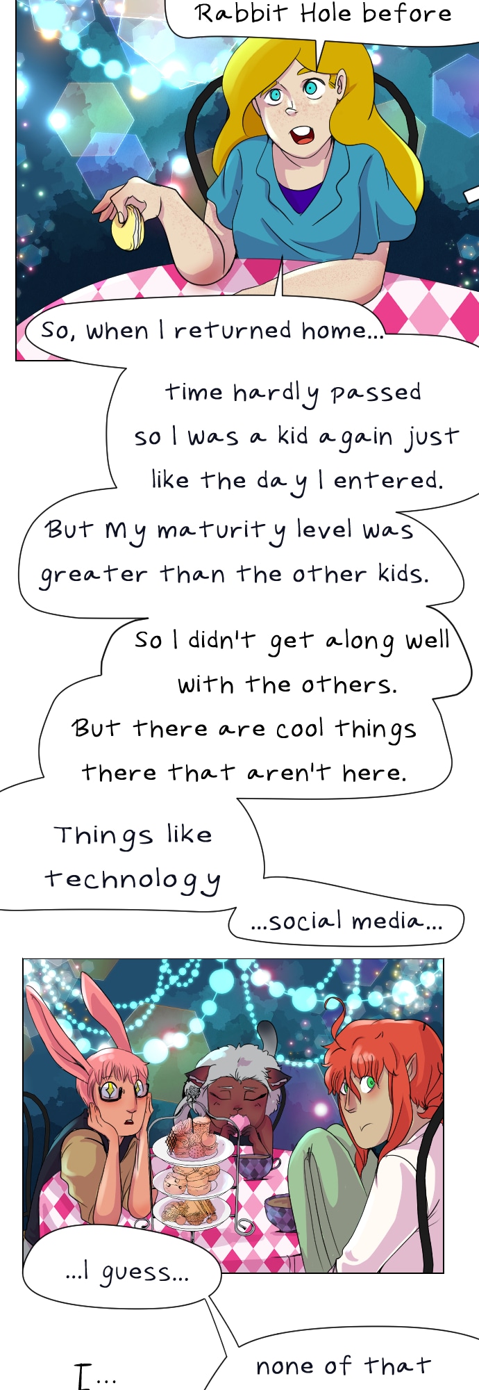 Alice is a young woman who finds herself trapped in Wonderland. She used to be able to freely come and go as she pleased, but this time it's different. Reconnecting with old friends and meeting new ones, she begins to learn that she doesn't really know Wonderland as much as she thought.