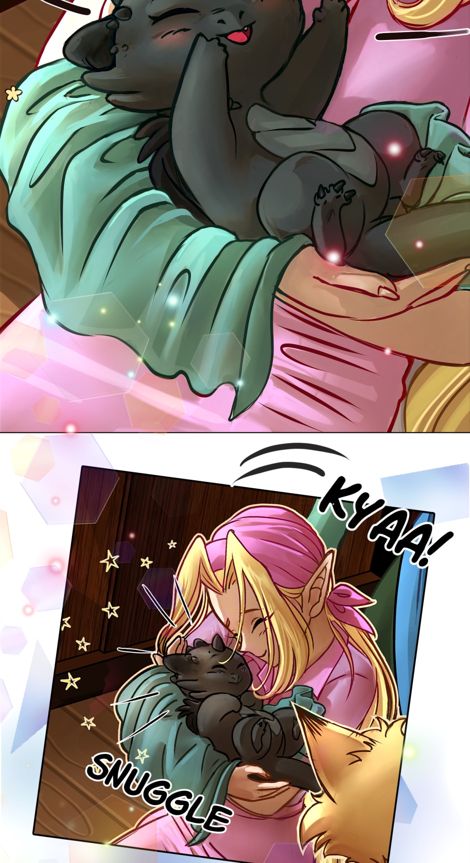Follow the daily life of the ex dragon priestess Filia and her adopted son Val (also a dragon) and enjoy the visits of the facetious dark priest Xellos .