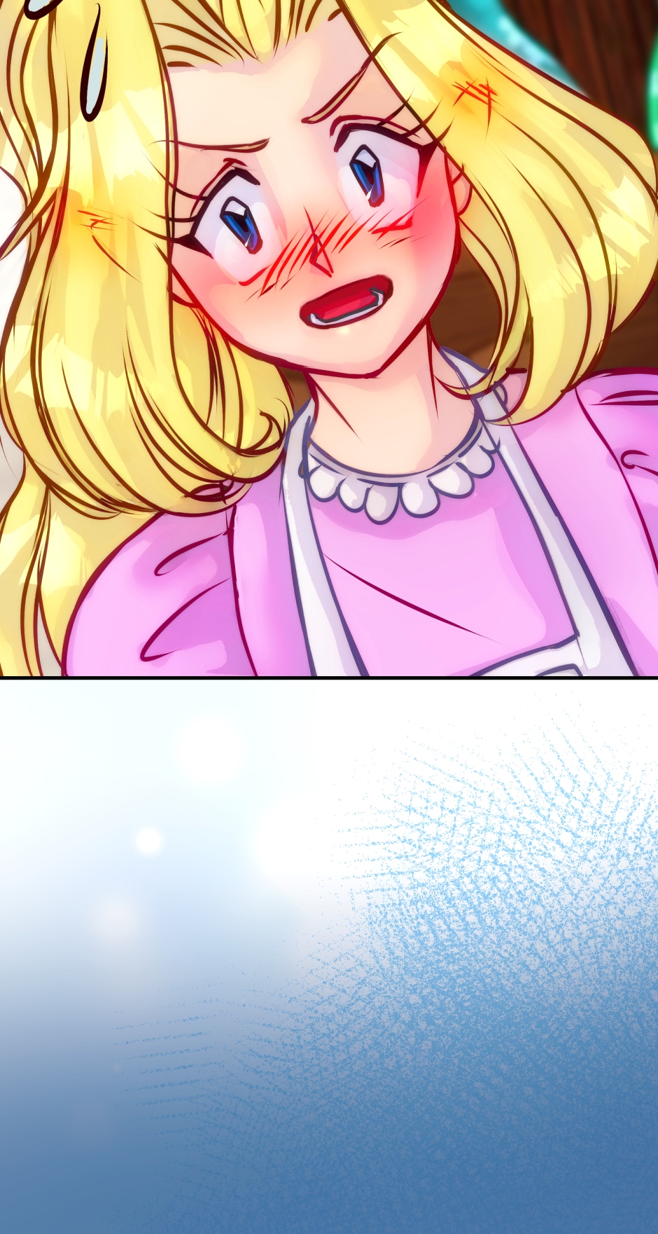 Val the the baby dragon succeeded taking human form and Filia heart is missing a beat .