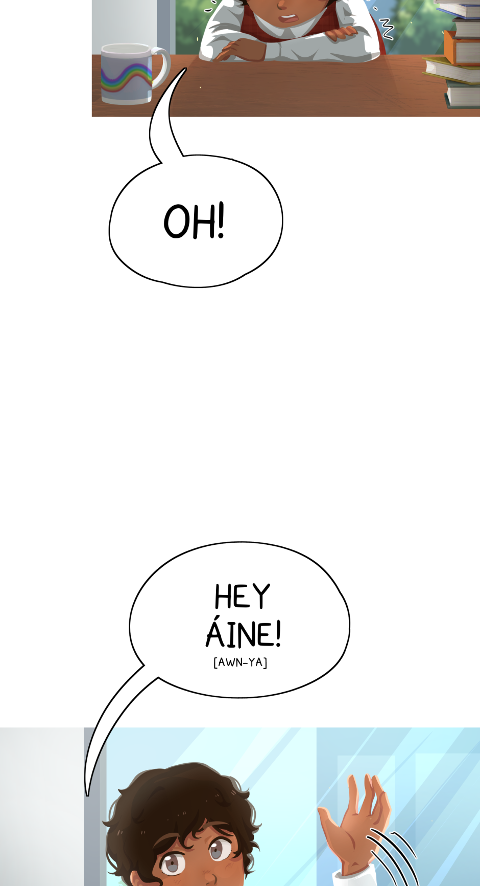 With white hair and horns, Áine (awn-ya) longs to meet people like her. When rumours spread about a dangerous outsider living in the forest, Áine finds herself in a complicated situation, due to the mysterious stranger recovering on her living room floor. | LGBT+ Fantasy Romance | Updates currently paused while on Hiatus, Usually updating weekly until caught up with Webtoon, Sunday 2pm NZST