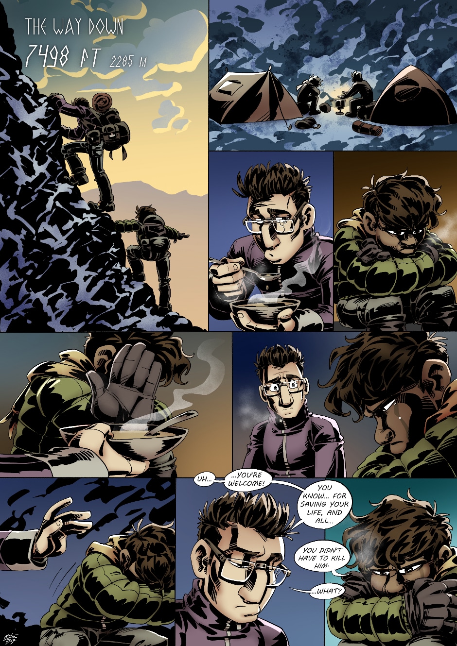 A horror webcomic set in the interior of Alaska, where a group of hikers attempt to summit the most mysterious mountain in North America: Mount Xiitustlan. Soon enough they find out it wasn't the best idea to dismiss the native tales so quickly...