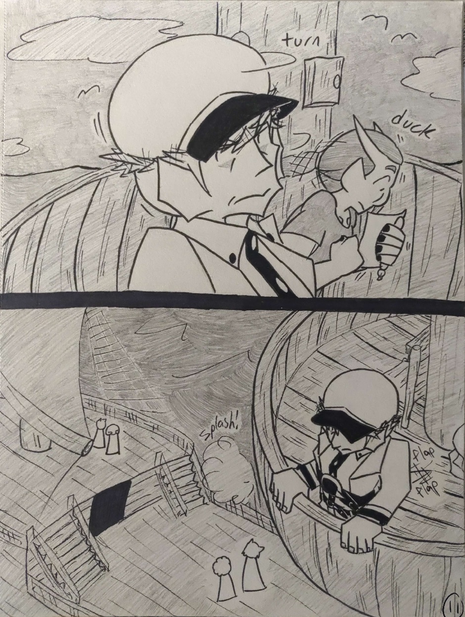 Adapted from my writing on the Siliren roleplay forum, Currituck Itavi's sailorly seananigans set sail aboard Organized Sailing Ship Day-Seizer in comic form! Follow the ambitious and joyful Hellbend sailor Currituck and his sailor besties, warm-hearted Human sailor Terry Johnson and sassy Hellbend sailor and fuckbuddy Djoomart Isanov, as they navigate the goofy saily-daily under the harsh gaze of the ship's hardass Human First Mate, Russell Denver. Join us here every Sunday (hopefully), m' mates!