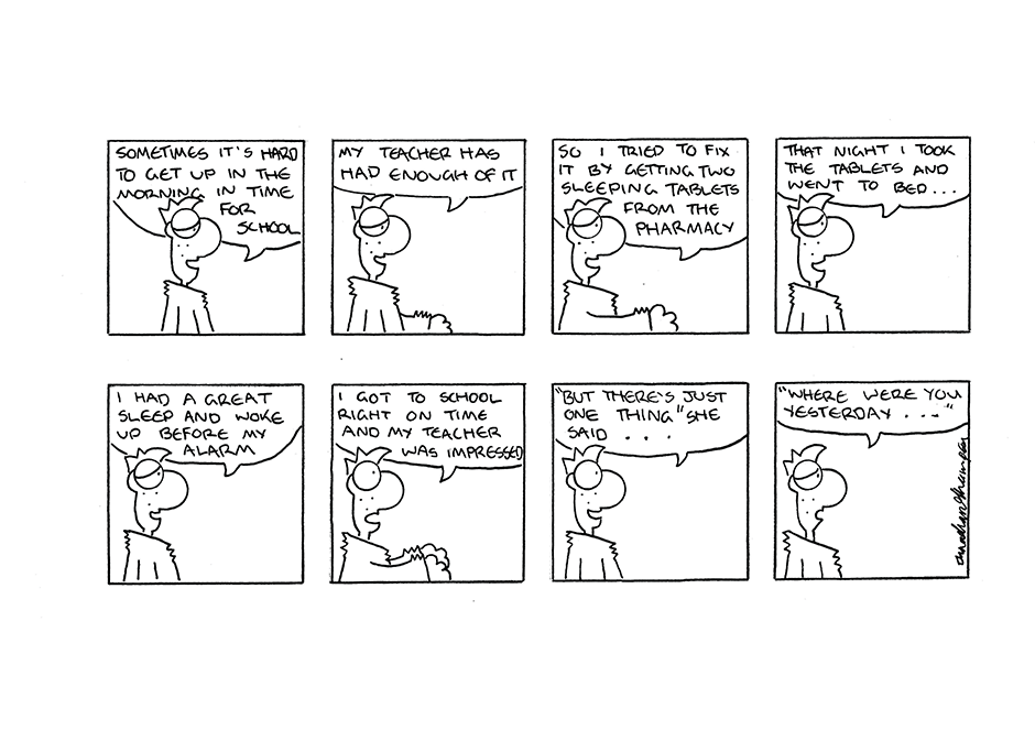 Jay is trying to stay awake at school.