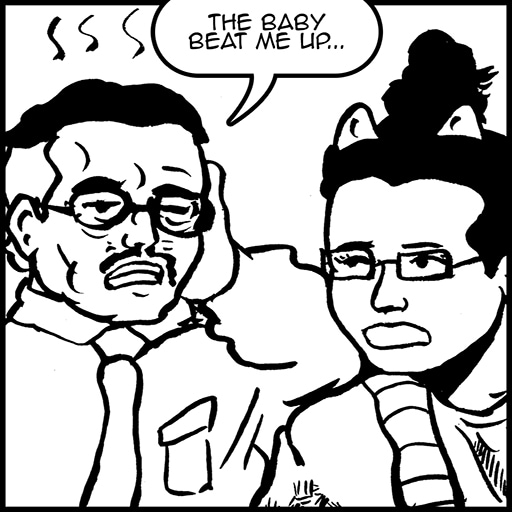 Junior has some serious hands. Read the original comic at https://mcschluberson.com/ics/battle-damage/