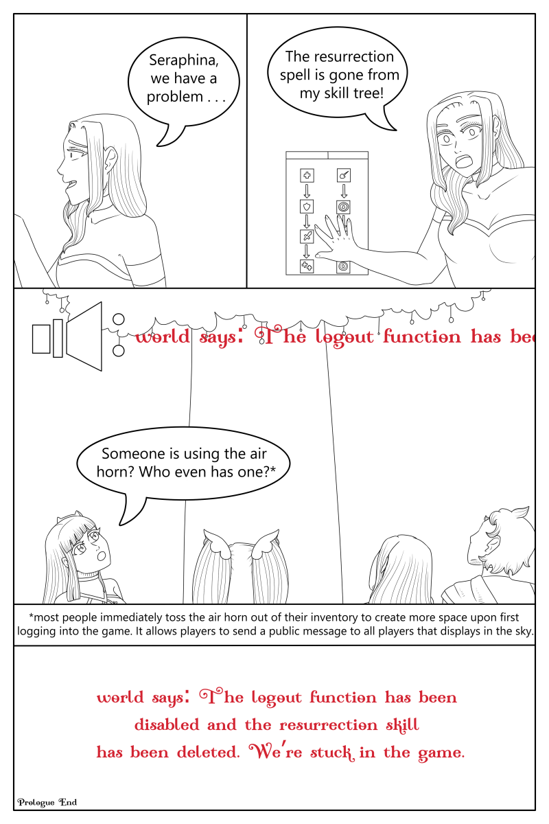 Seraphina and the other players of the online game "Kingdom of Reine" are suddenly locked into the virtual world with death in-game means death in the real world.