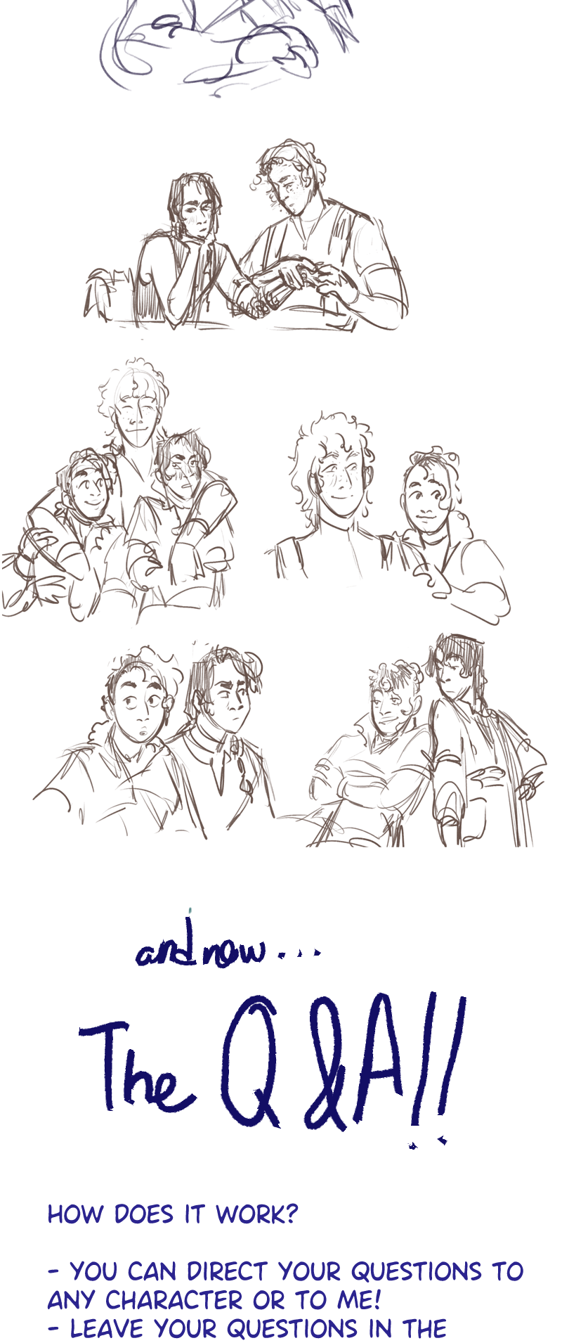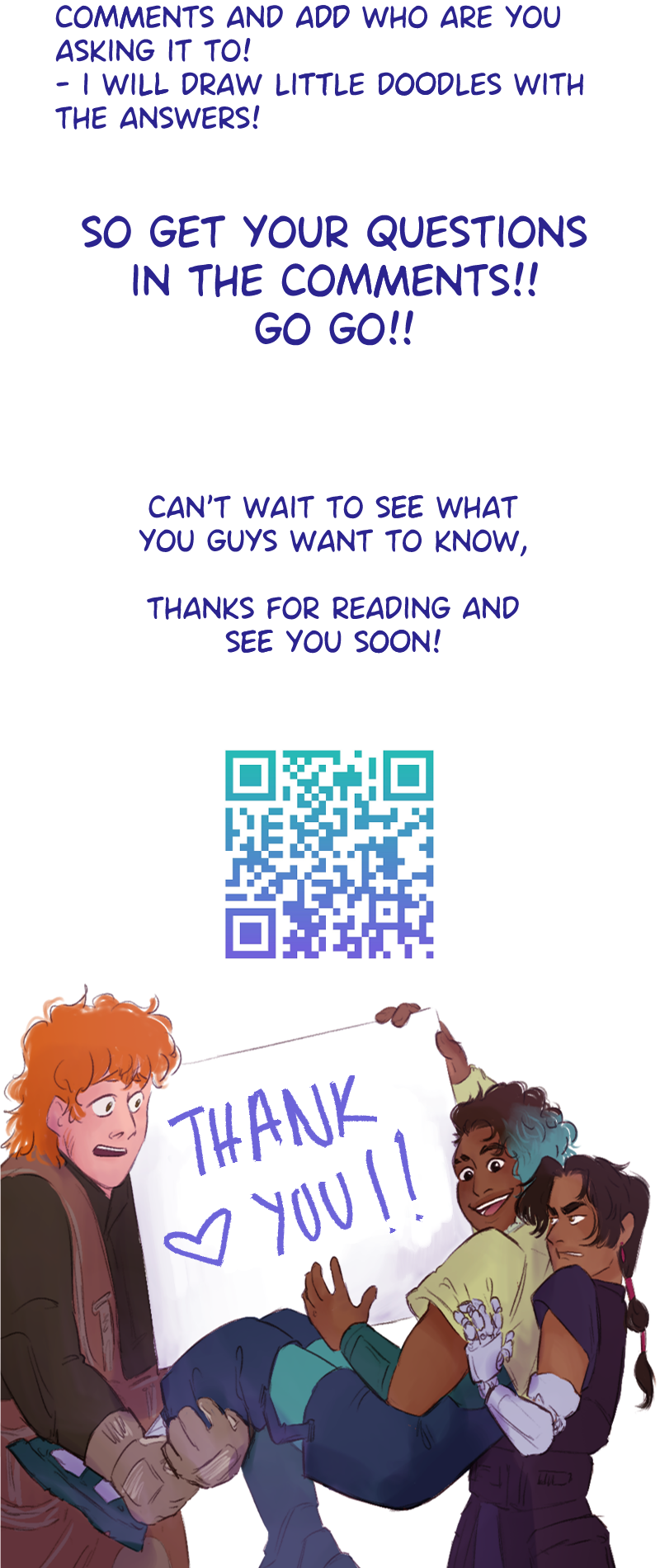 Hi!!! Here it is!! Leave your questions in the comments, and in around two weeks you'll have your answers with silly comics!! Can't wait to read them <3