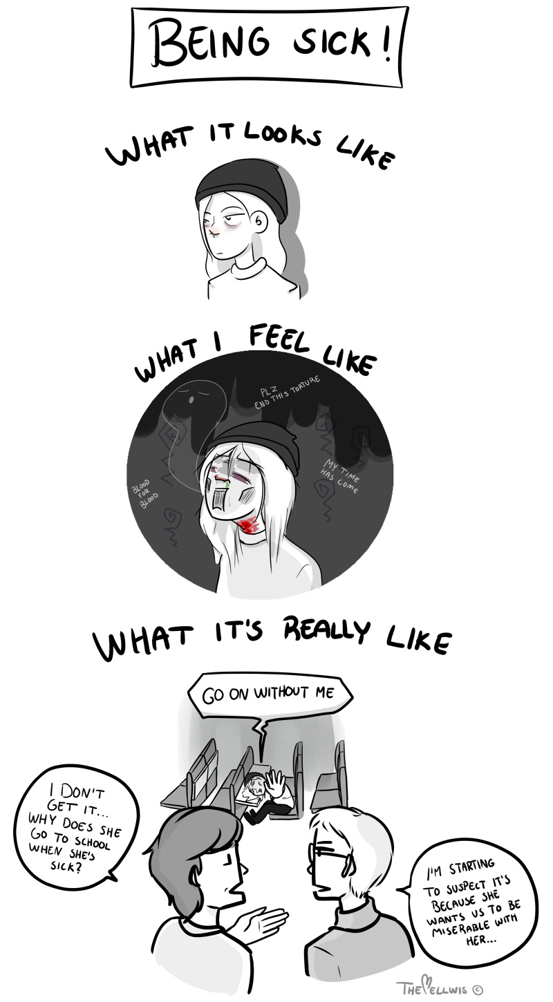 I do go to school even when I'm sick. I don't know why since I don't really learn anything (Haha). BUT yes it does happen that my friends or classmates get sick because they hang out with little sick me.