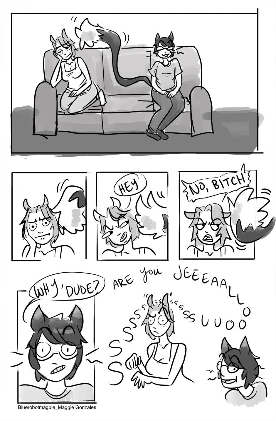 Blue is my alter ego, she's a cat girl and definitely insane. Serry is Sam's alter ego, she's a horse girl and crazy too.