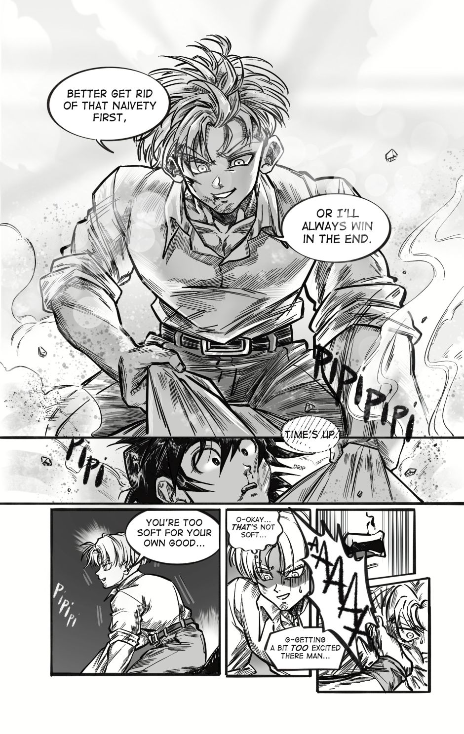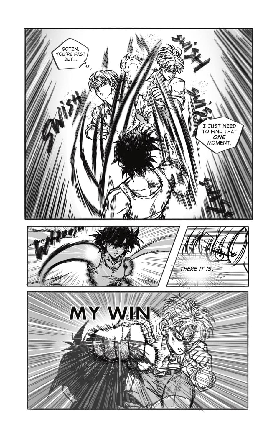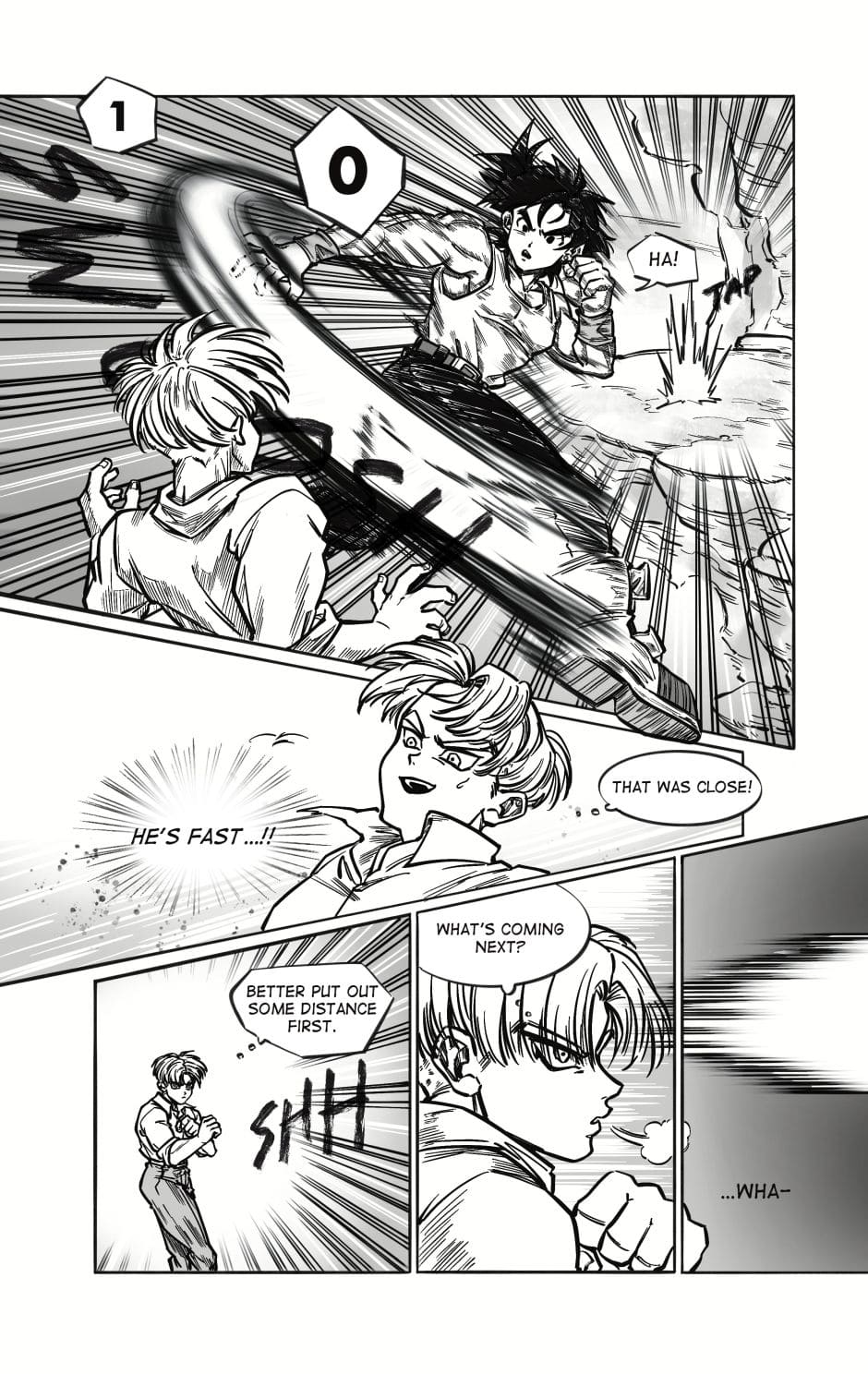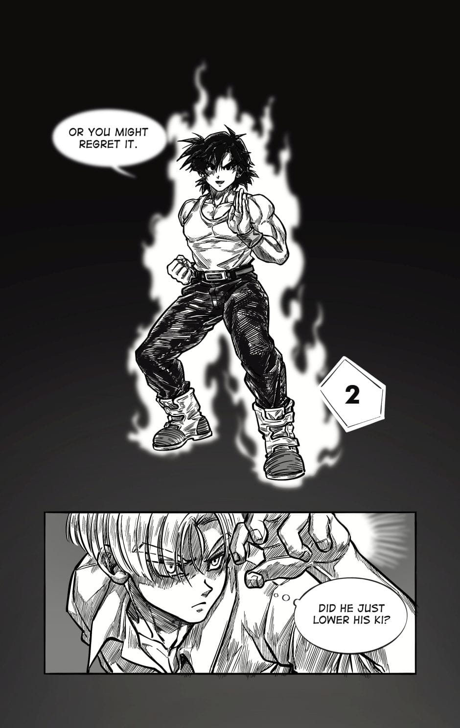 ToT trunksssss why are you so stupid!!! its awkward alr dont point it out!!! aaaaaaa goten cheeky face when hes got trunks pressed on the floor is so cute and !!! your action lines and the movement!!! its so gorgeous i love your style sm and their dialogue flows so well hehhe please forigve me for only commenting on this chapter kah!!