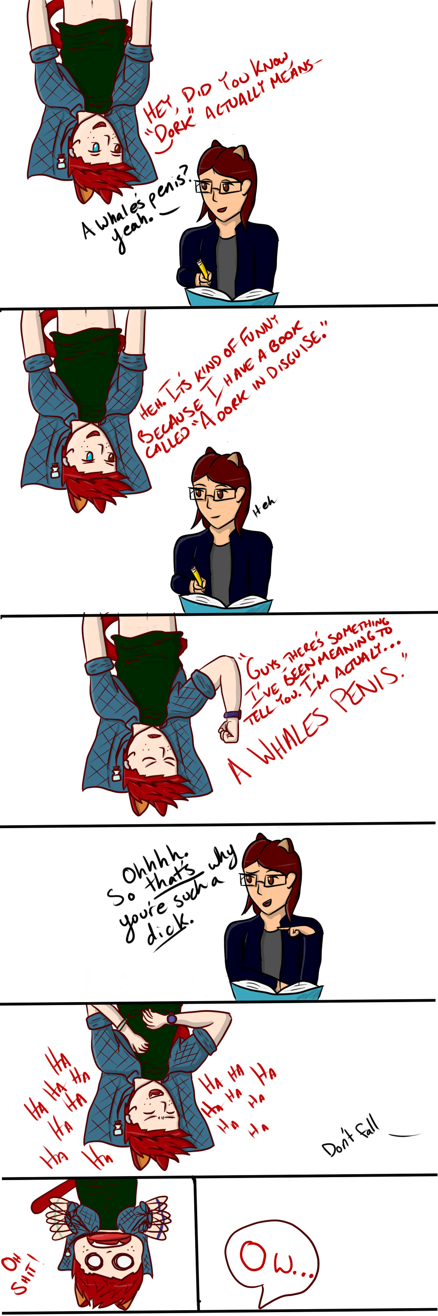 Yeah, this is a real conversation I had, no I wasn't hanging upside down sadly, but whatever. Sorry for not posting much lately. :)