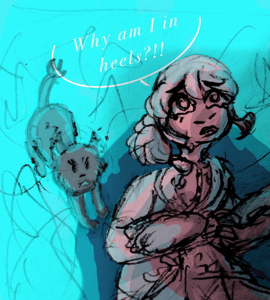 Yuu was most likely in ceremonial robes when entering Twisted Wonderland, meaning Yuu was likely in heels, and likely had to run away from Grim in them.
