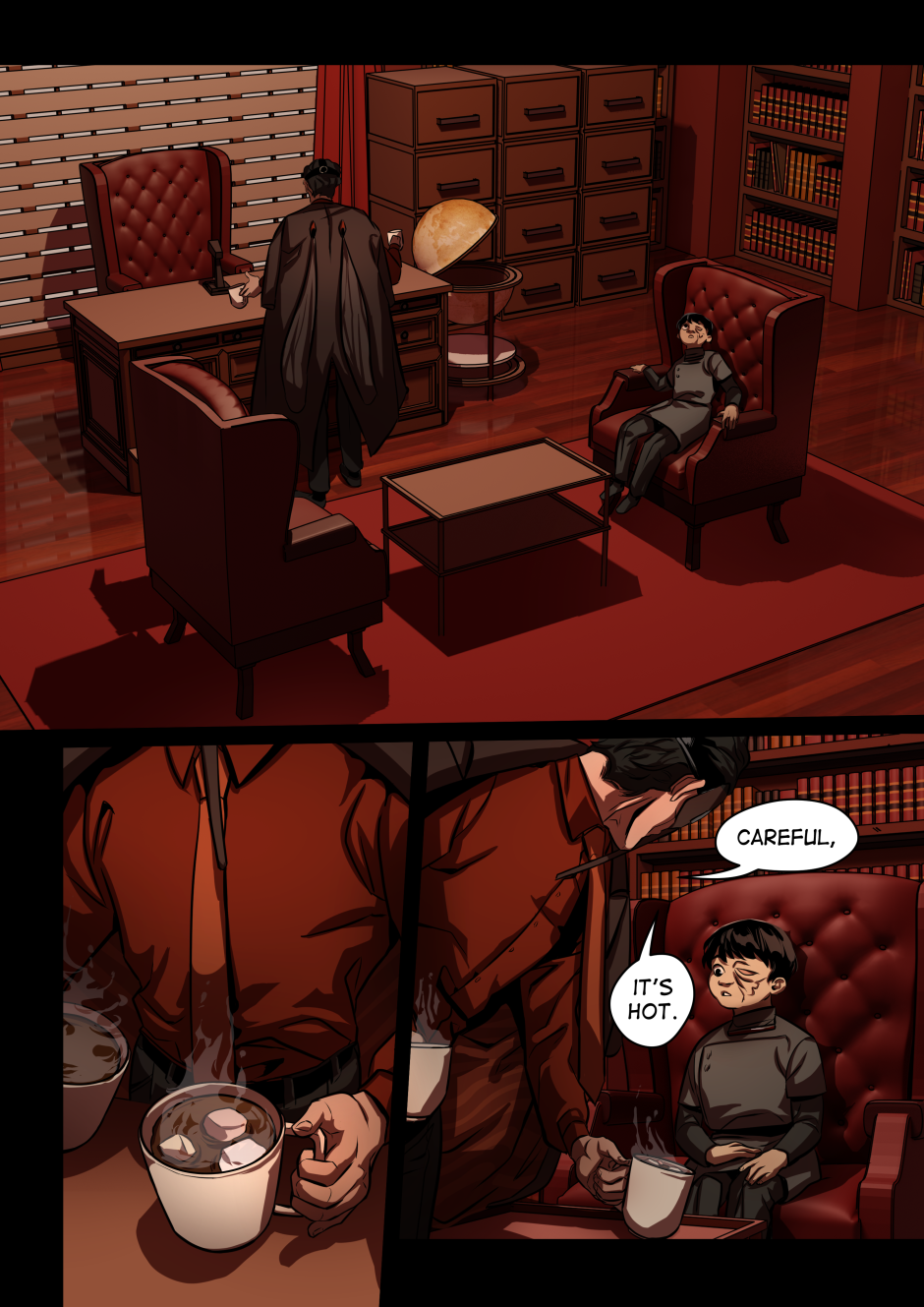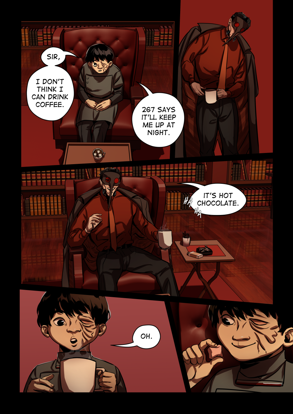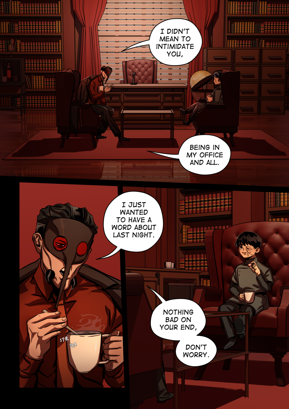 Ngl Anopheles' office is one of my favourite background locations I've designed. Like yes ofc the mosquito cult leader guy would have a fancy office that's fully red to match his aesthetic.