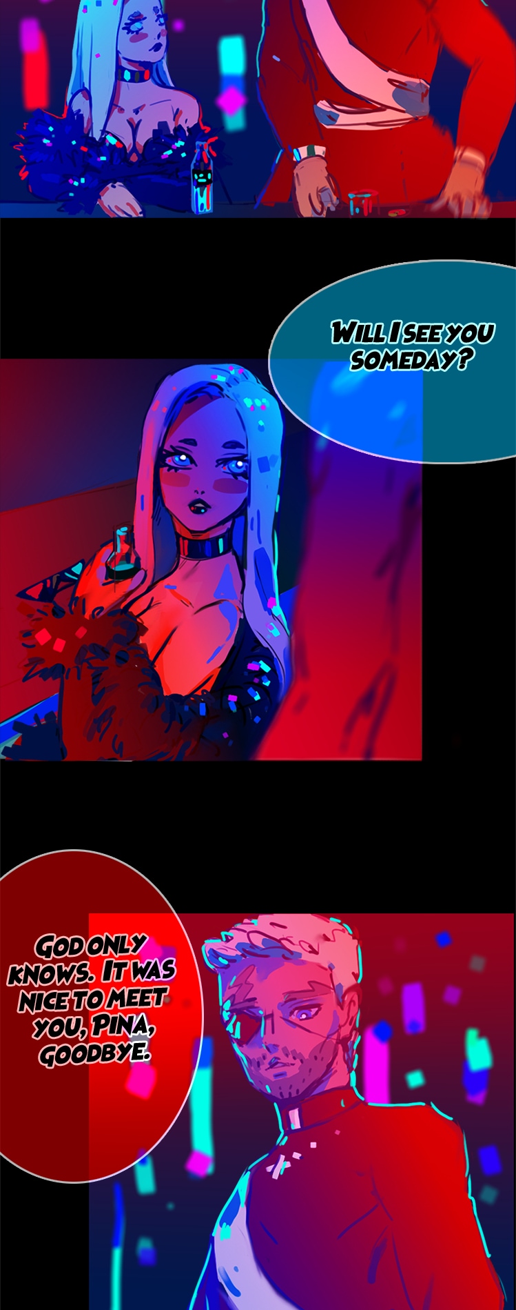 The working girl Pina Colada accidentally encounters priest Molla. After a brief dialogue about life, Padre leaves the bar but forgets his ring. The girl tries to catch up with him to return the ring but accidentally witnesses a murder that will impact her entire life.