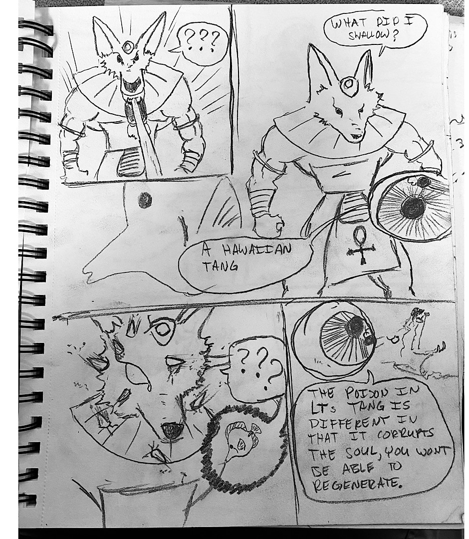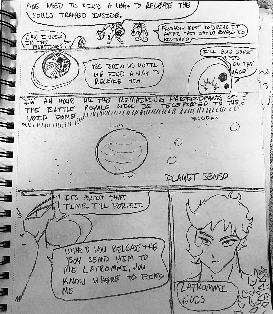 The Battle Royal Continues and Latrommi got stomped through a planet by on of the previous edgyptian Demi Gods Anubis the same God he stole golden boots from that is revived by Aku. Anubis having reached an enormous size thinks he won and shrinks back to a normal size only to be caught by Latrommi who turns into a Hawaiian tang and darts toward Anubis’s mouth. Once swallowed Latrommi defeats Anubis using a particular type of poison that prevents regenerating. Aku gets surprised by Guan Yu and he slices him into but even this level of damage is not enough to stop Aku. Aku attempts to escape with his mace which hold Chronos soul but Latrommi as a Hawaiian tang quickly takes the mace from him before he teleports. Aku reports to the elder that massacred Latrommis family stating he lost his mace which apparently also has the souls of other druids from the past. Guan Yu decides to forfeit and advises Latrommi to find a way to release the souls from the mace after the battle Royale and to send Chronos his way for training. The Battle Royale is in its final hour all survivors are sent to the void dome where they will compete in duels until one participant is declared victorious. The elder that killed Latrommis family decided to wait on killing this newly discovered Druid until he fully recovers from the fight he had long ago with Latrommis father Don the Destroyer. Only 5 participants will compete in the Void Dome who will come out on top?