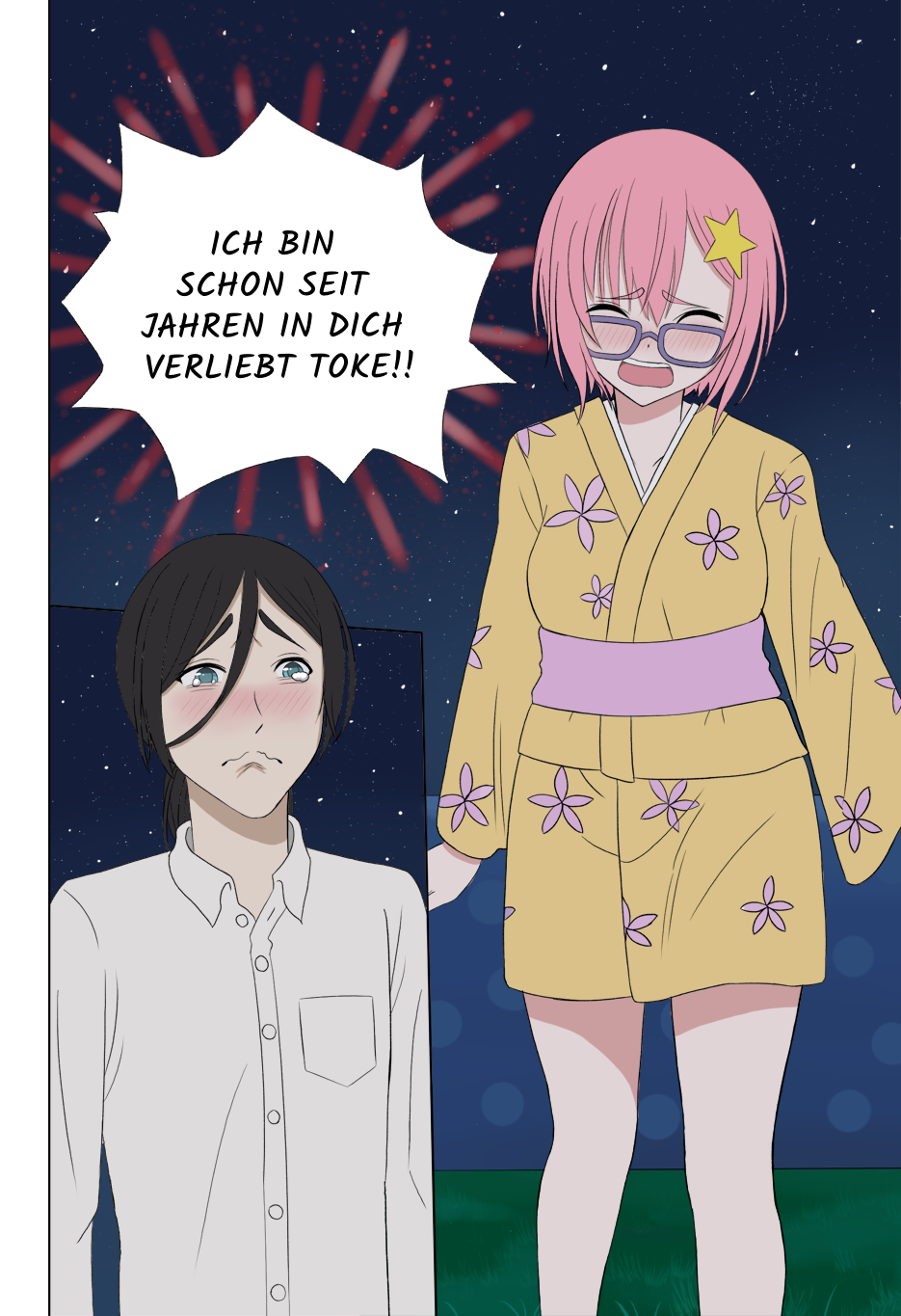Immer mehr Menschen haben ihren Erstkontakt zu romantischen Gefühlen nicht mit realen sondern mit fiktiven Personen. Sei es die Anime Waifu oder Husbando, ein Film/Serien Charakter oder V-Tuber. Toke ist ein solcher Jemand, seine Geschichte soll einen kleinen Einblick in eine solche Gefühlslage und ihre Komplikationen geben.