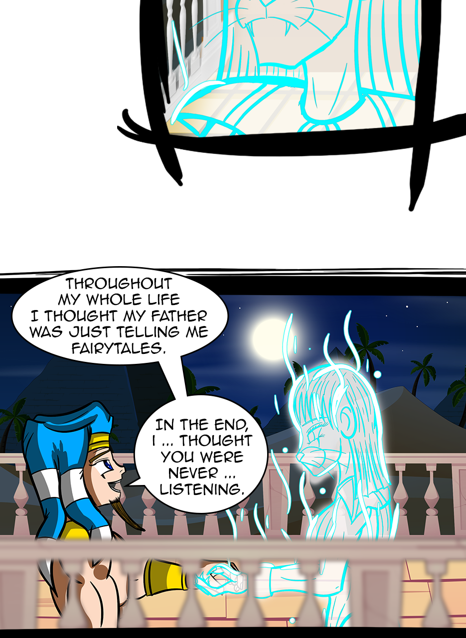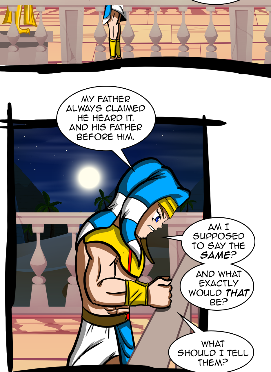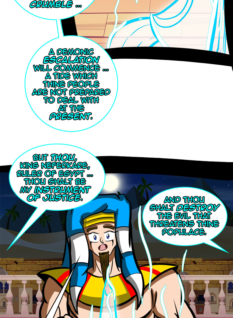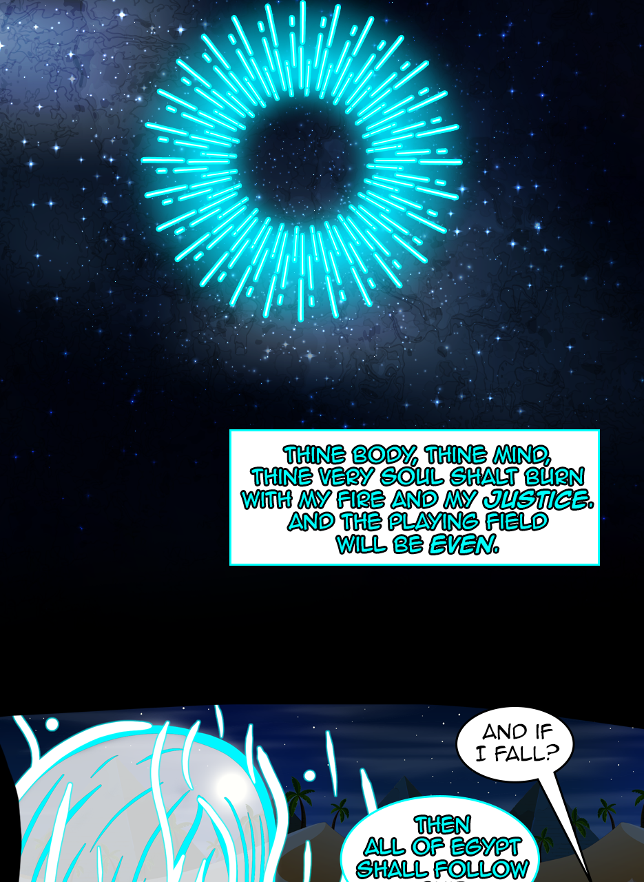 I loved the fact that you made a ruler/a pharaoh as the hero/hunter. And WOW, he is not a tyrant! The way he pinched the bridge of his nose while listening to his ministers bickering gave me the impression that he is blessed with humility. He is either used to their argument but did not behead them, yet😅 - for some reason, or he is trying to think deeply of a solution. Anyways, he is good and blessed and protected by the gods. I loved the panels of the citizens and how he was concerned about them. I also appreciated the background music you chose for this episode. Well done! Bravo!