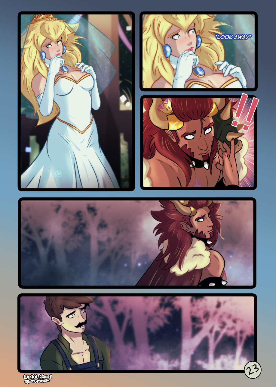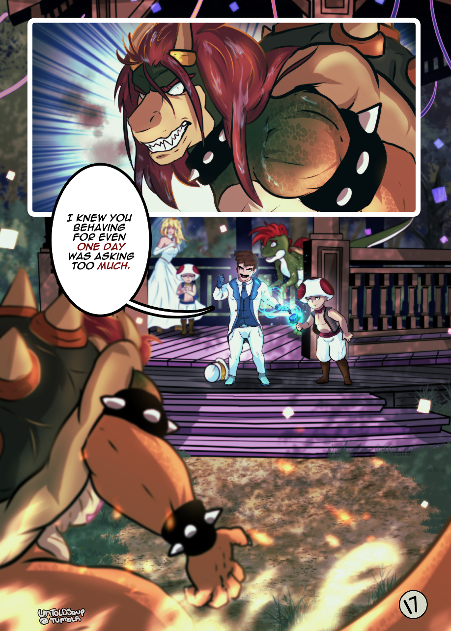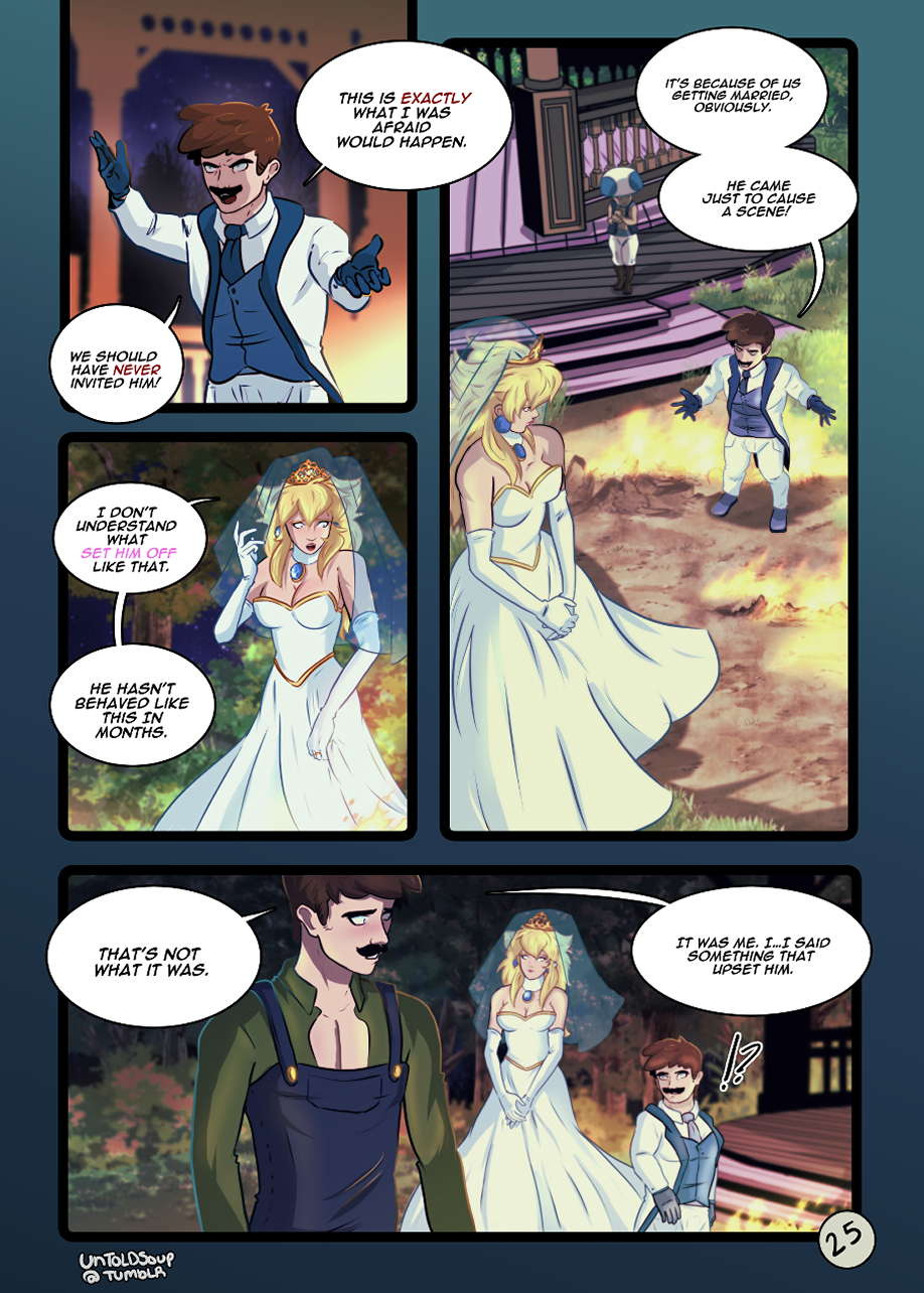 Bowser's over-reaction at the wedding causes a rift between everyone. *uploaded my redraw of the first half of this comic!! Spent months redrawing it hope u like!!*