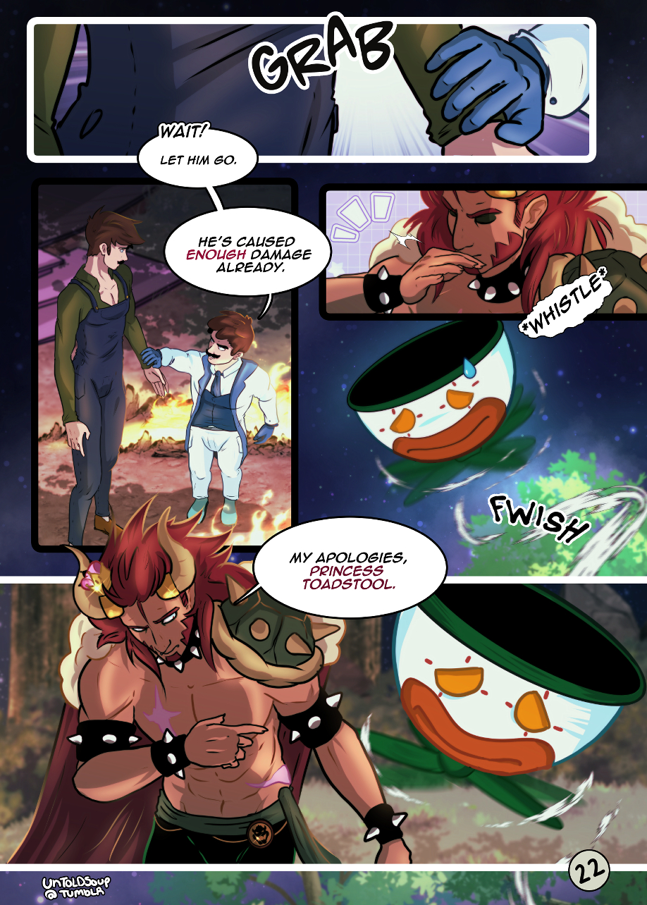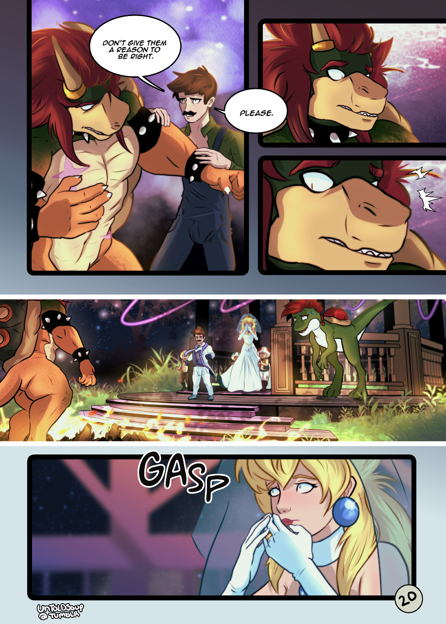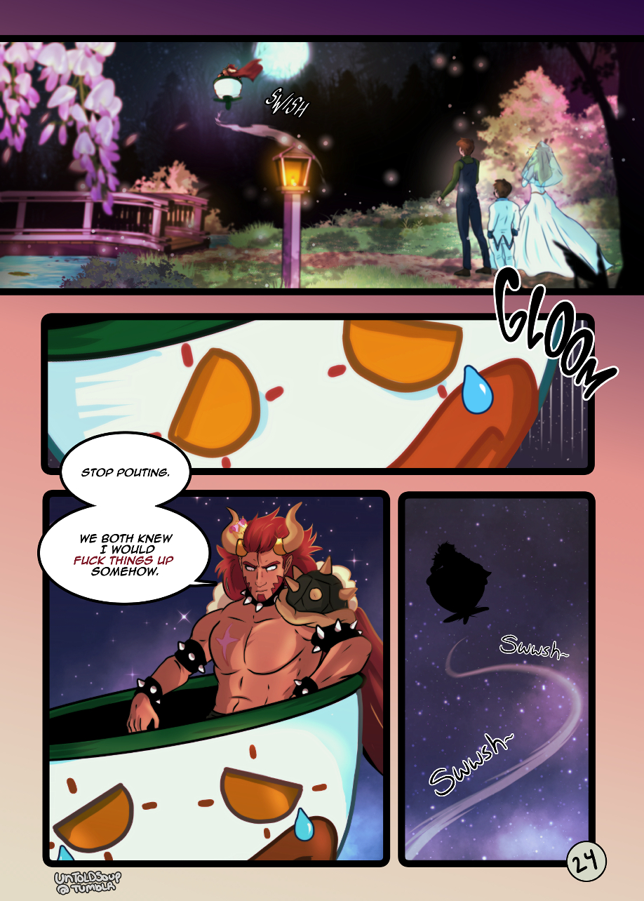 Bowser's over-reaction at the wedding causes a rift between everyone. *uploaded my redraw of the first half of this comic!! Spent months redrawing it hope u like!!*