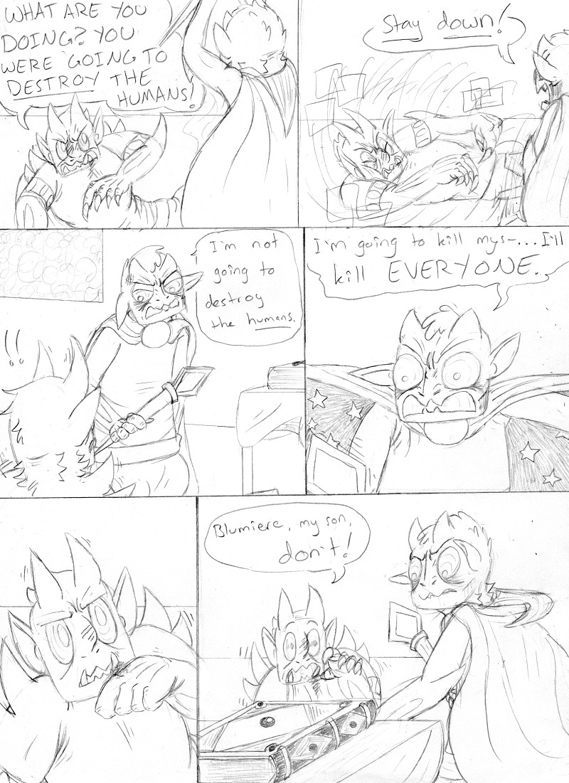 god i love the expressions here- blue's defiance and fury- how his dad goes from angry and imposing to pleading. i like that you both feel glad that his dad is getting whats coming to him (yeah smack him blue!) whilst also knowing blues about to make a big mistake