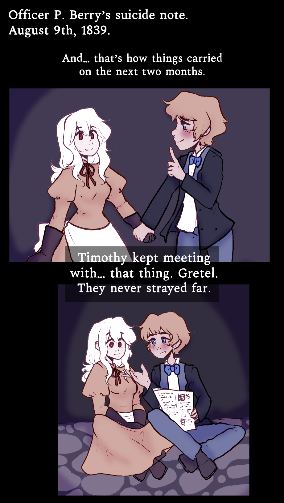 (Romance/Horror/Historical Sci-fi) March 4th 1837 England, two robotic beings were created. Siblings, Hansel and Gretel. Lacking a true understanding of right and wrong, and circumstances leading them to be on their own, the two are left to find their own paths. One simply trying to live out his purpose... the other unintentionally learns what it means to be human. Regardless the path, the two learn love is both a blessing and curse. || Updates every Thursday, 7am PST