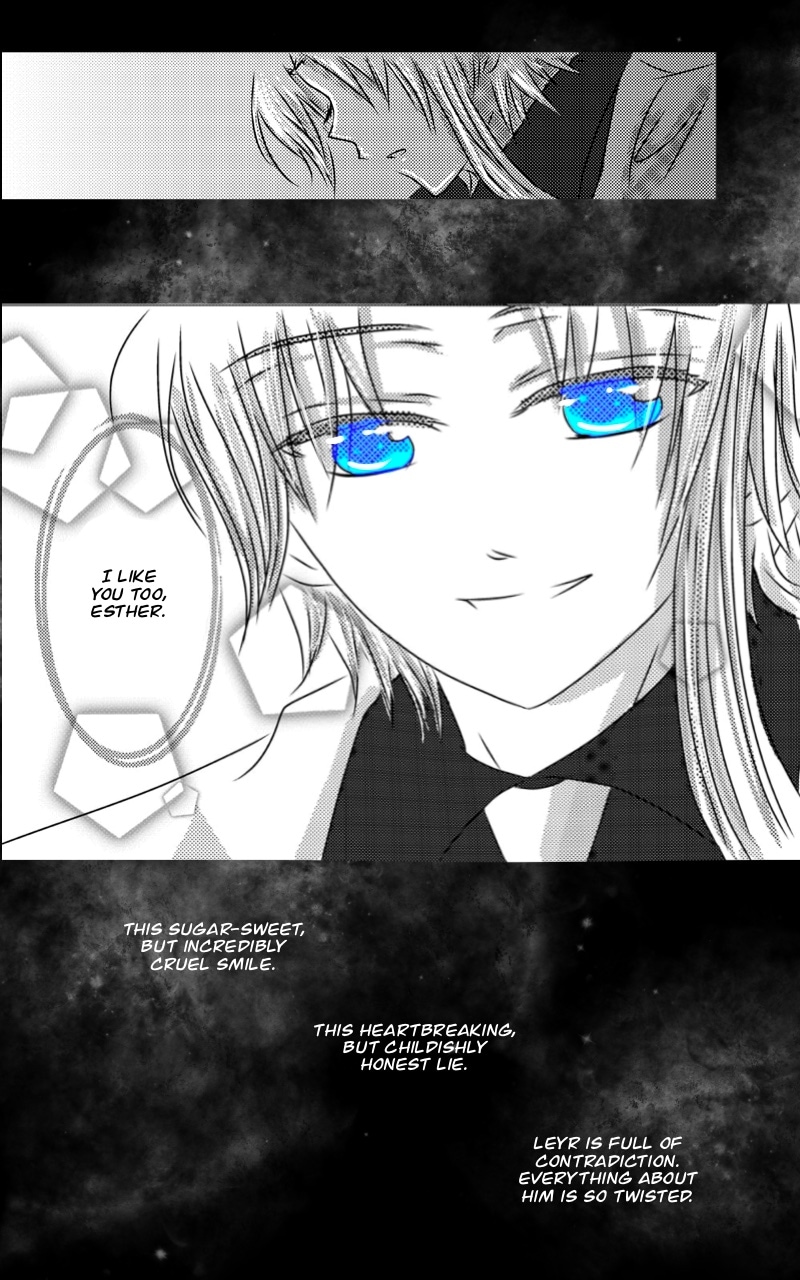 Esther is an angel. Knowing that it is deadly, he has still chosen his heart. Leyr in the other hand is a character who is almost impossible to reach emotionally caused by his insanity and what he went through.
