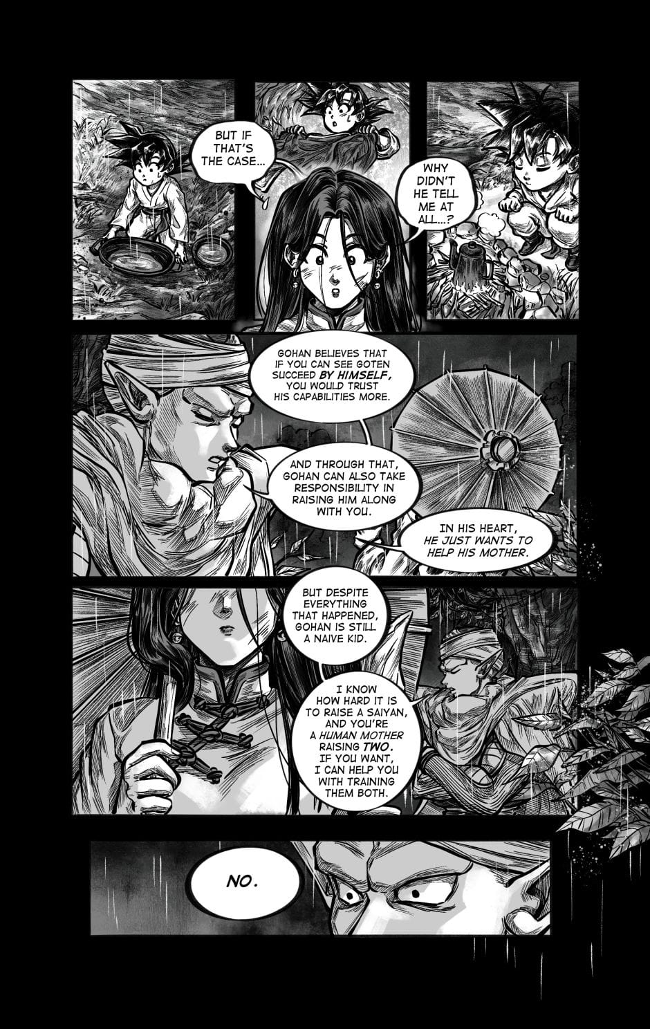 The webcomic was the author’s own adaptation inspired by the old versions of Dragon Ball, not associated with the current running variations of the series except for 1 or 2 details. The characters in here will act more mature and realistic to fit with the theme of the story.