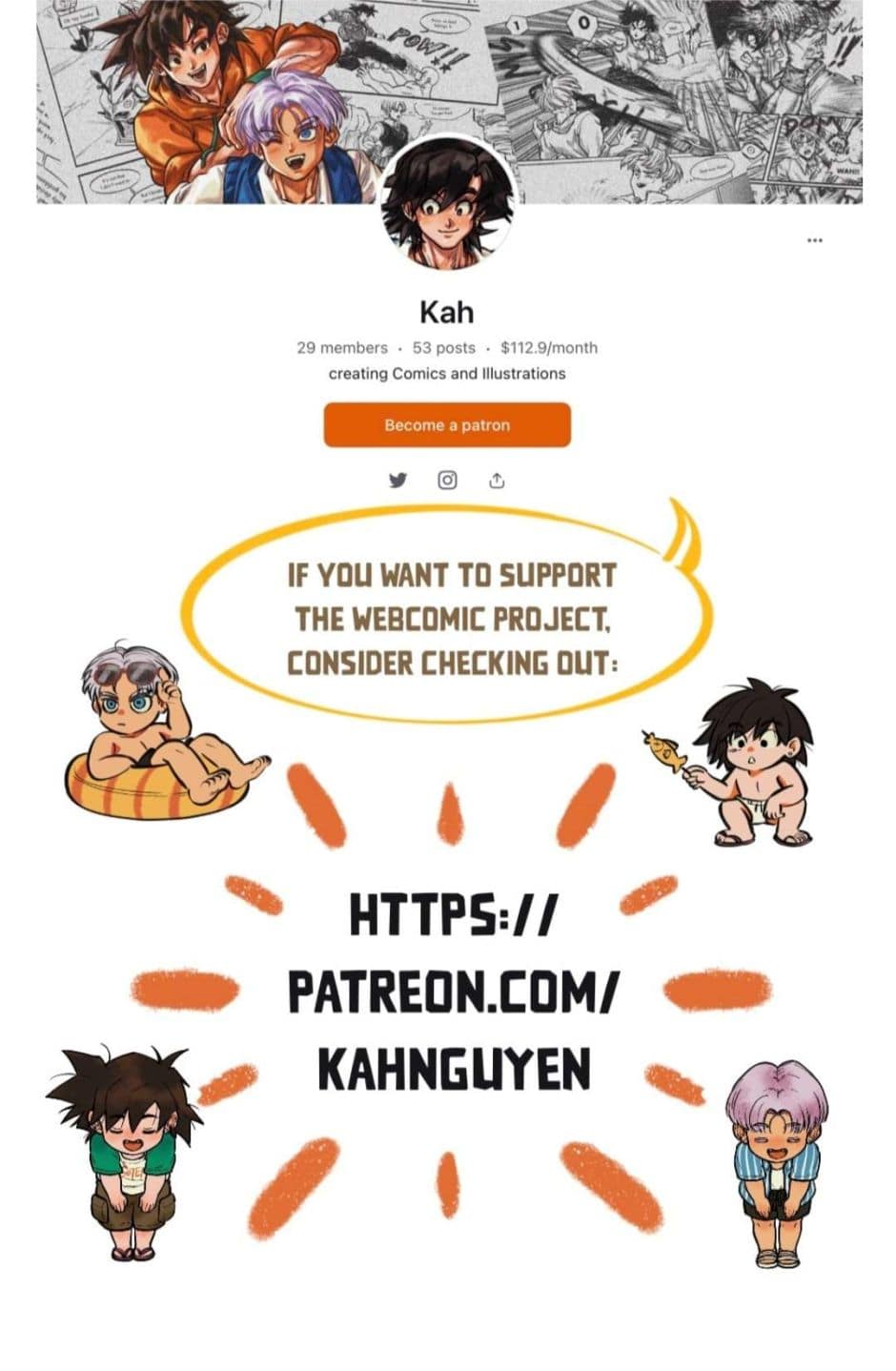A webcomic series that’s heavily inspired by the famous Dragon Ball series’s very underappreciated characters, Goten and Trunks. Was published on my social media since summer of 2021 until now, here’s the compiled link on Twitter until this feature got deleted: https://twitter.com/i/events/1406601438994726926
