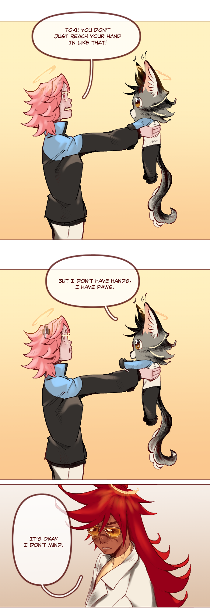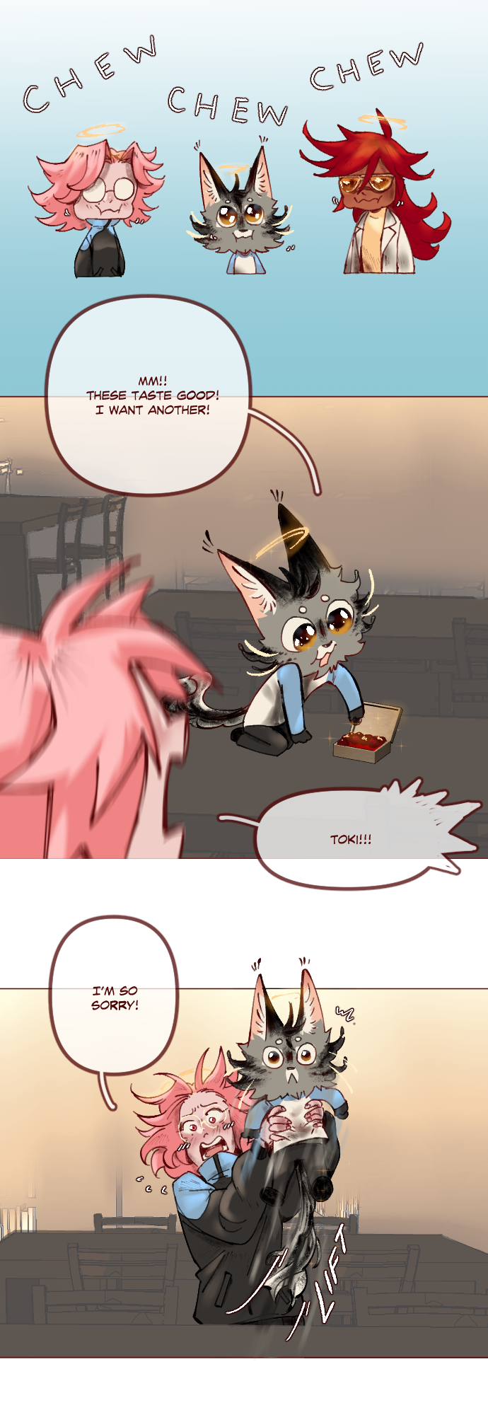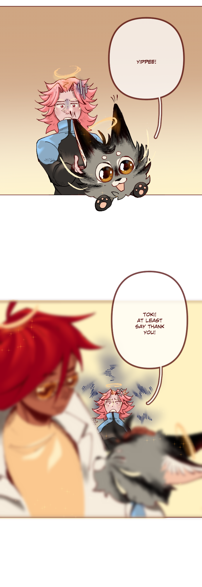 Heaven Bound is BACK!! And nobody really stepped on Toki's tail...he just wanted Lumaine to pick him up.