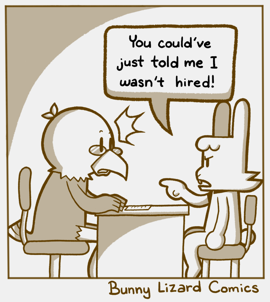 employment is a joke. (this is an original style Bunny Lizard Comic)