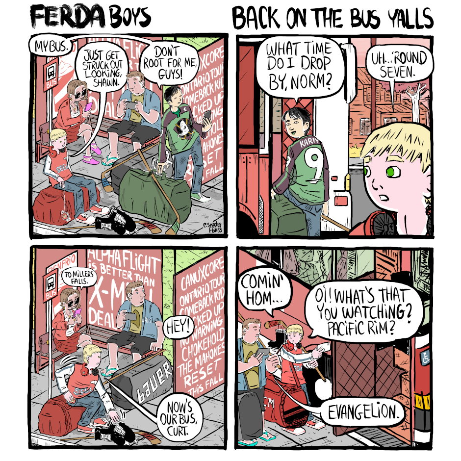 Another way of wishing "good luck" Ferda Boys is a slice-of-life and sports webcomic about a group of junior hockey players. Also, it has its own score, THEME FROM FERDA BOYS by David Tulloch: https://soundcloud.com/hockeywebcomics/theme-from-ferda-boys And last but not least, please, if you like my work, you can Buy me a Coffee: https://www.buymeacoffee.com/hockeywebcomics :)