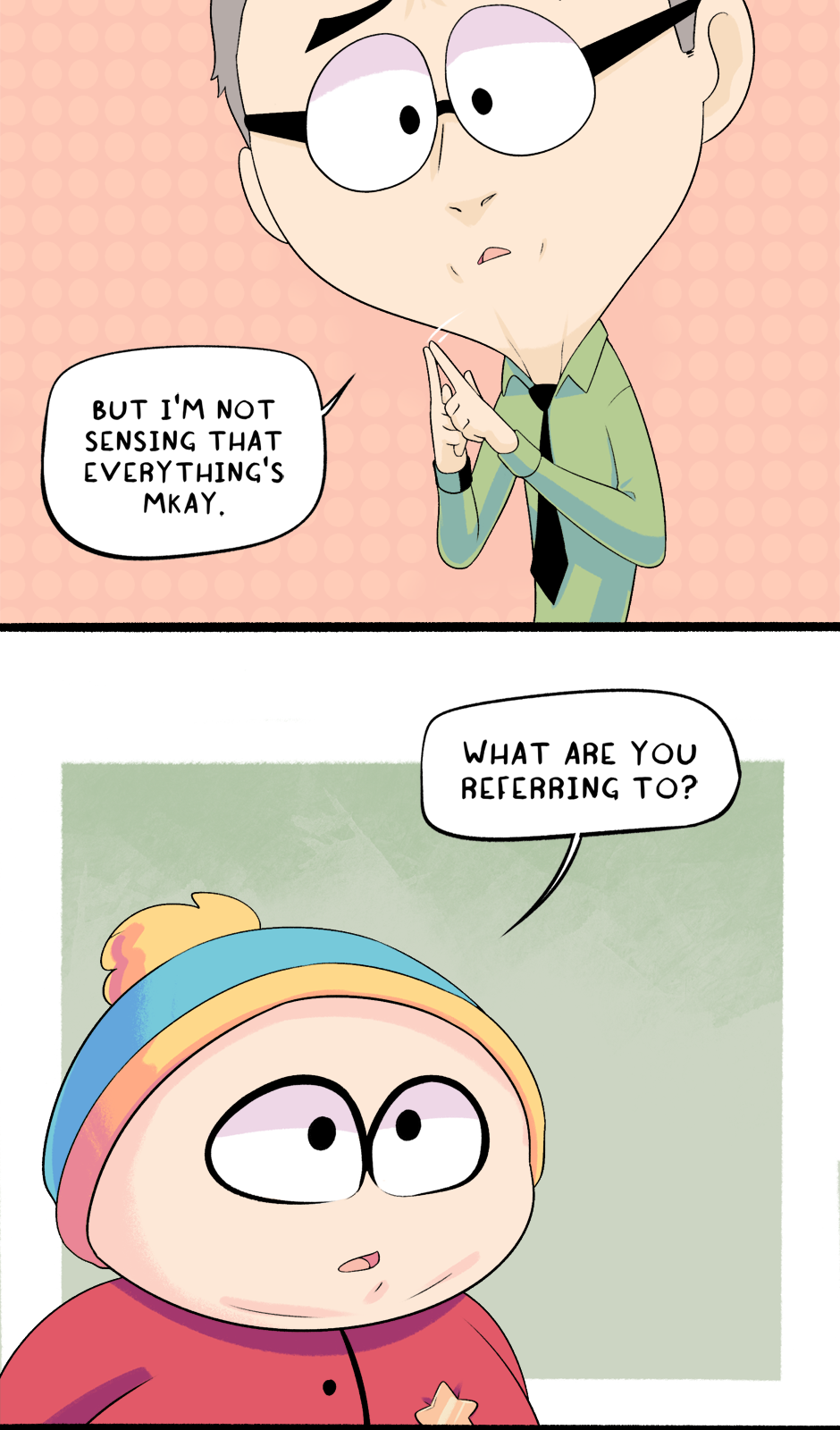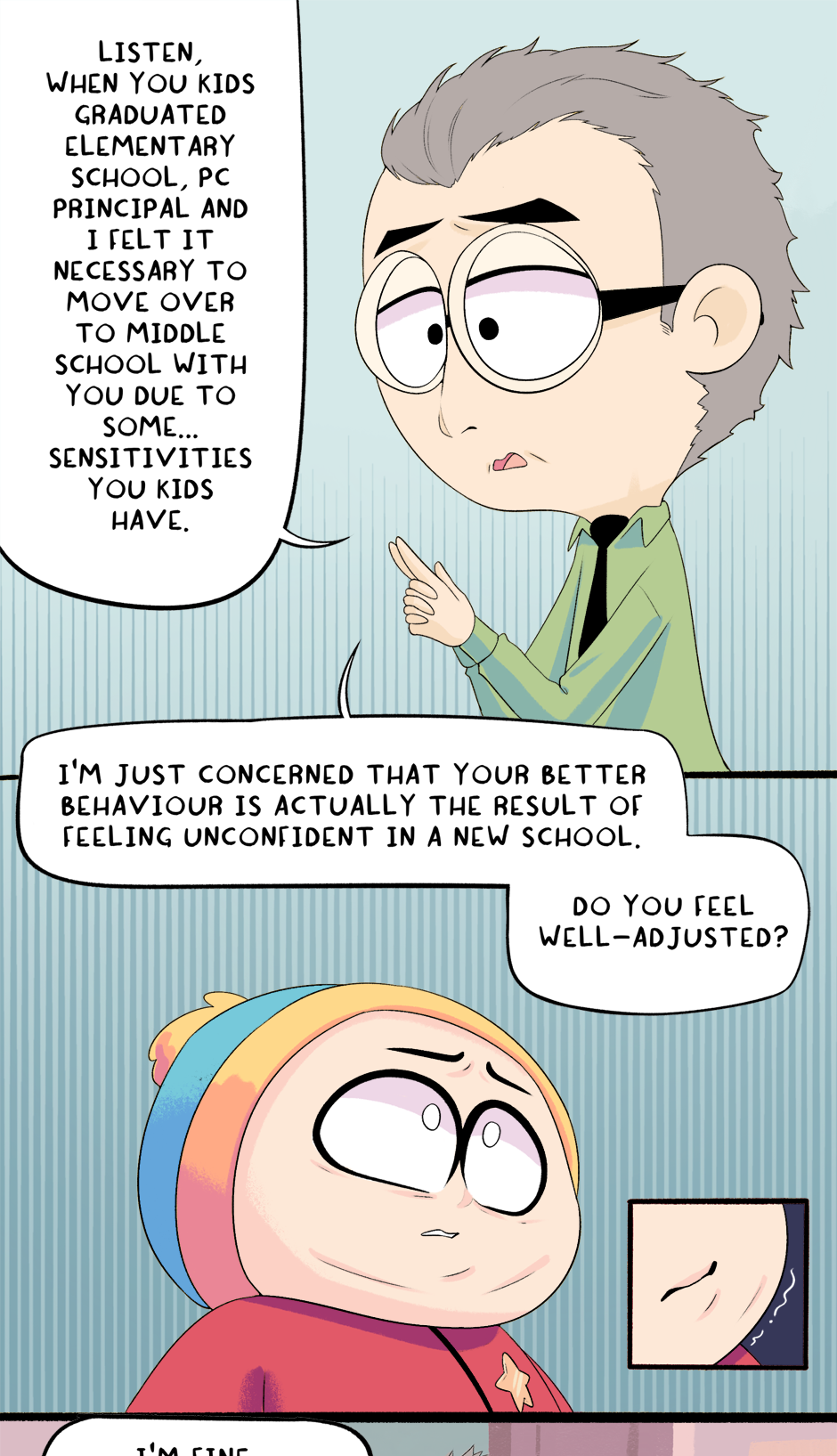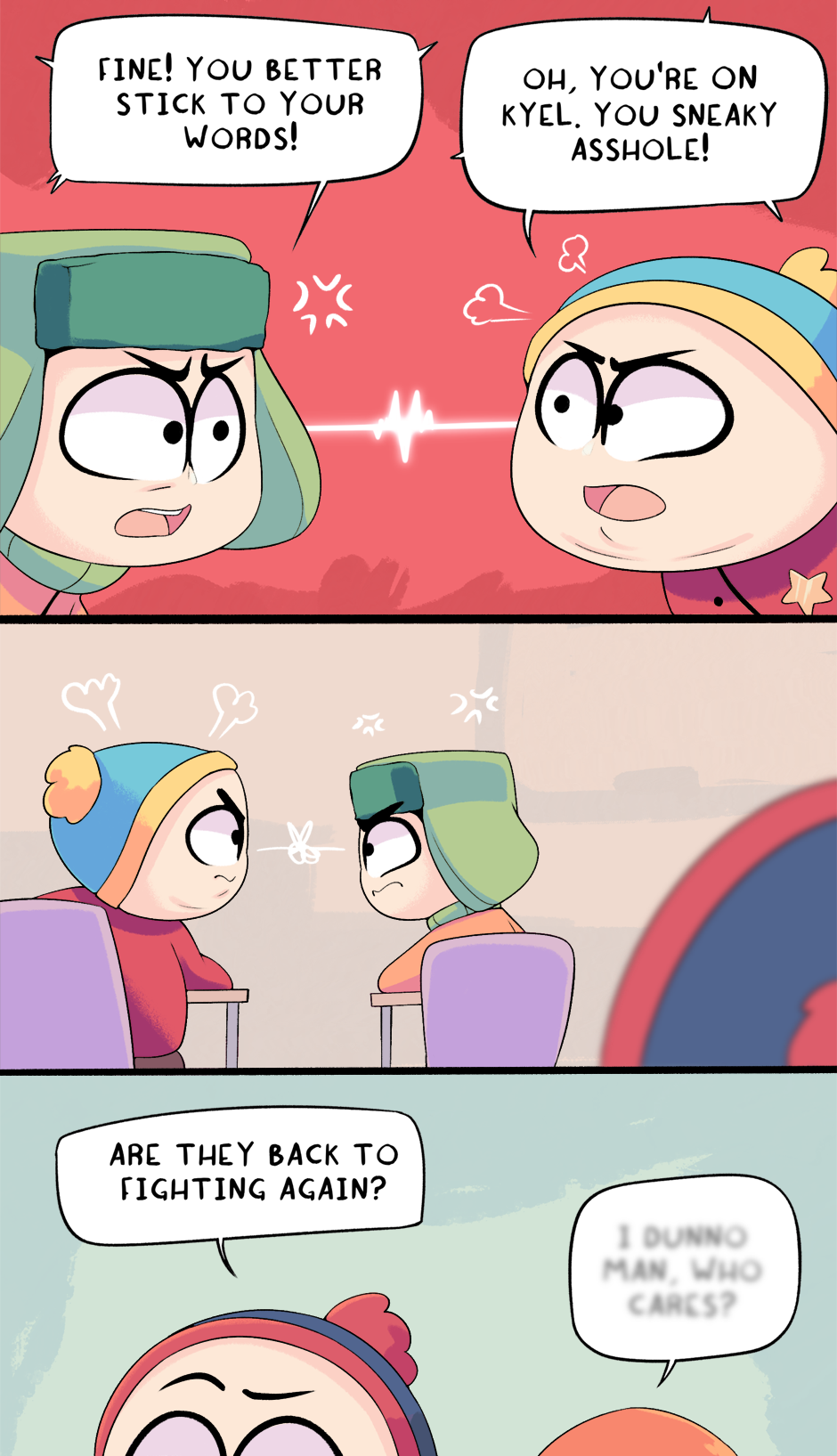 This chapter is part 1 of why Cartman was kicked out of school. I hope you all enjoyed seeing things from his perspective for a change!