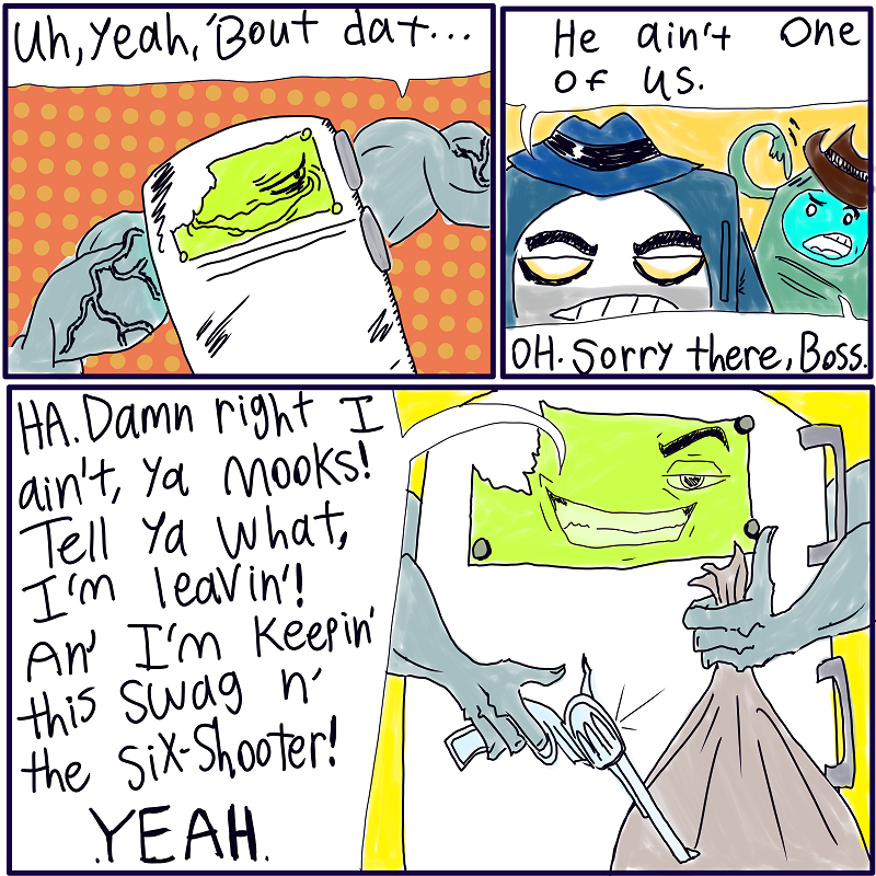Fridger! Ya dummy! You should had left instead of trying to be cool! And his expressions are AWESOME! (๑•̀ᗝ•́)૭