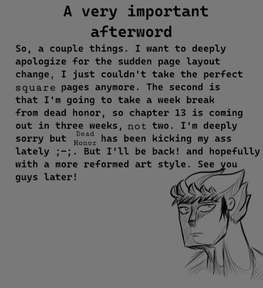 Thanks for reading Dead Honor! We'll be back in a few weeks -Editor Static