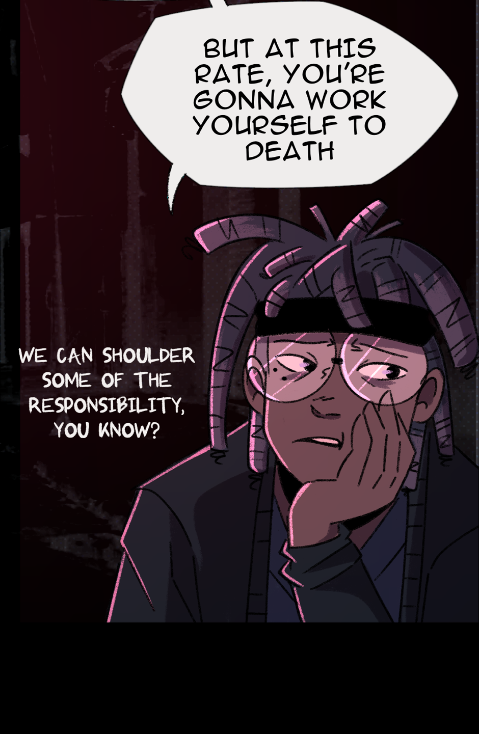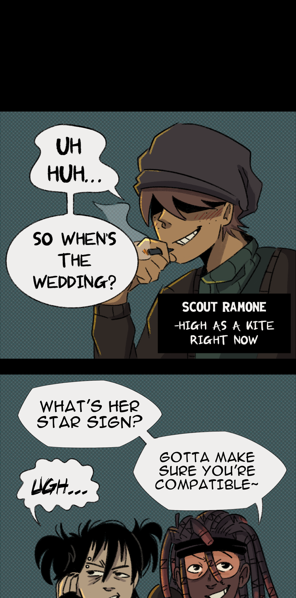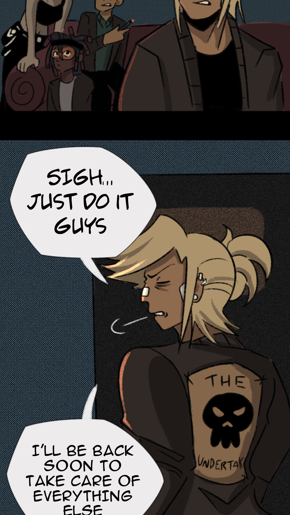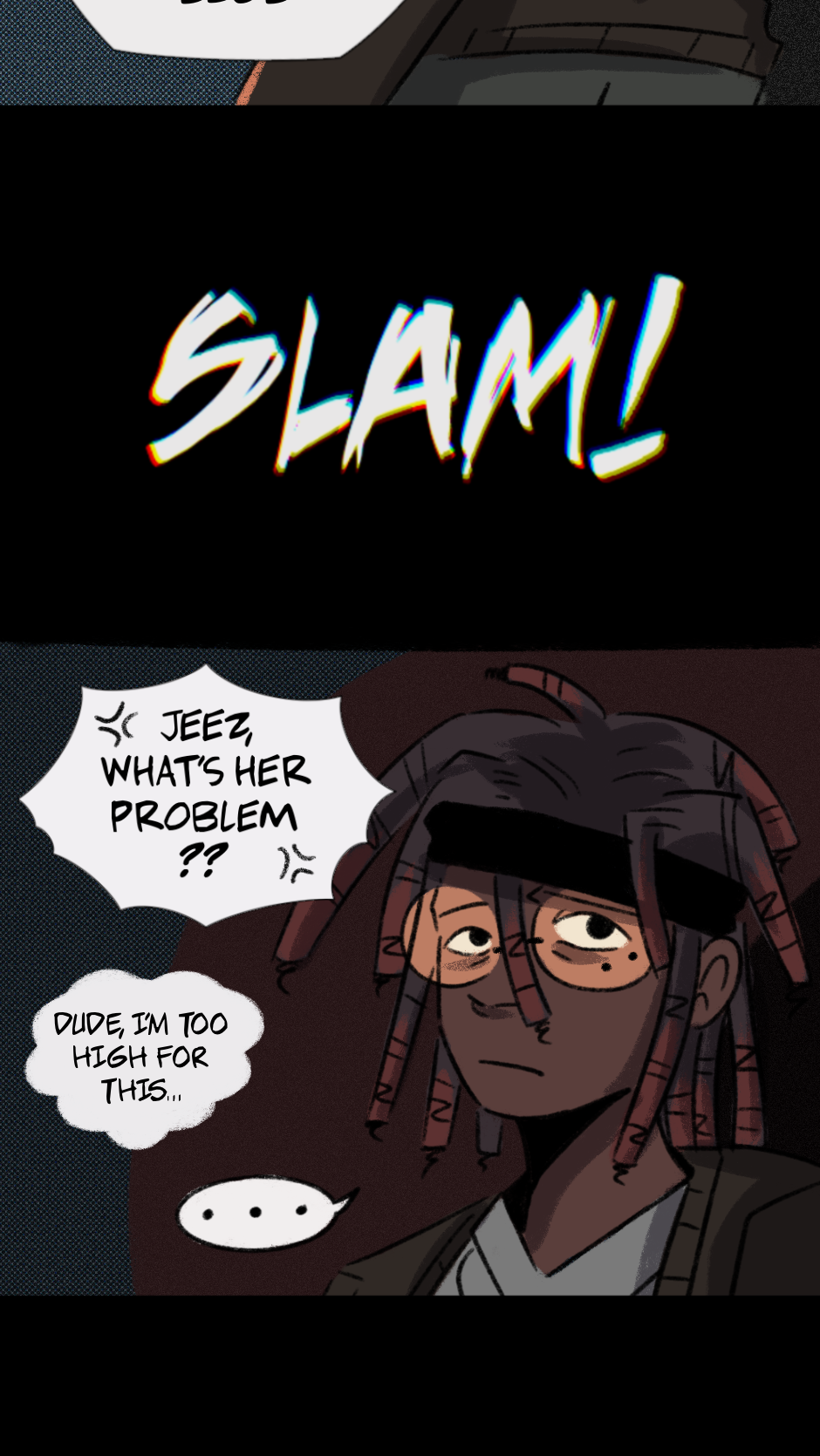 [CW: This comic contains strong language, violence, and drug and alcohol use. This comic also tackles issues such as depression, addiction, and anxiety]