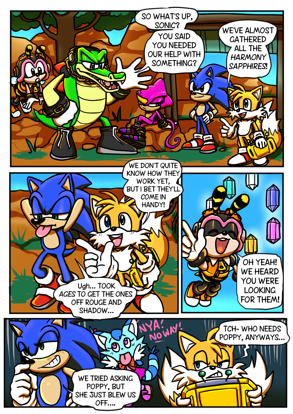 The last of the Harmony Sapphires are coming together, at last... But will following their trail inadvertibly lead the Chaotix into the hands of danger? Or is the good Doctor about to reveal his plot at last?