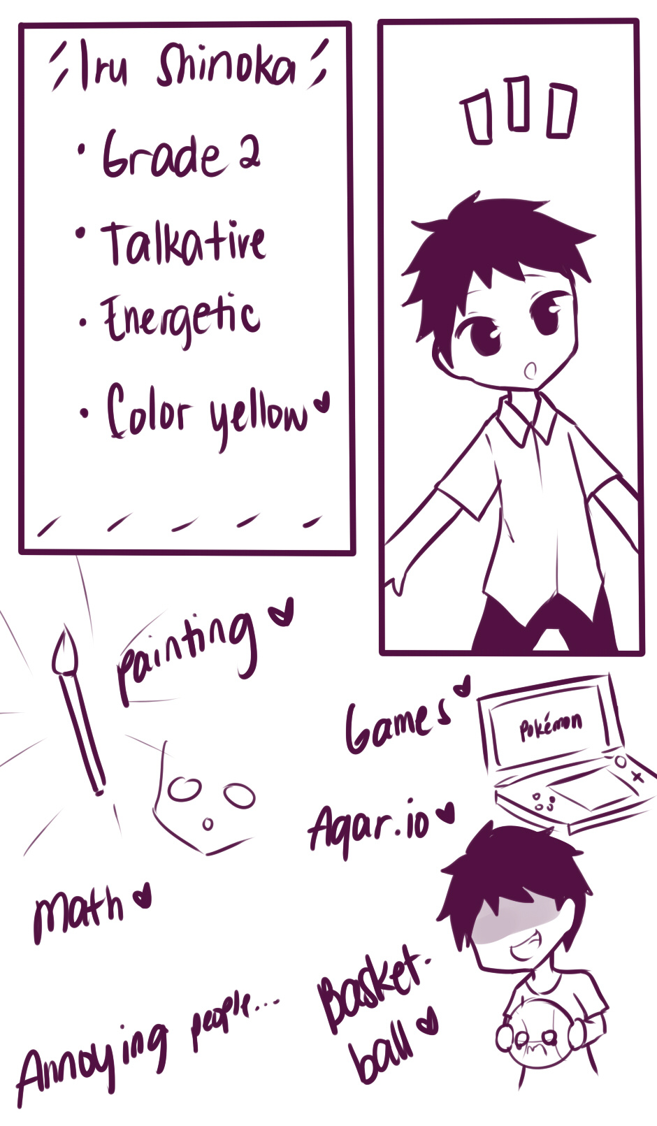 Introducing the protagonist (and mostly be appearing ppl)! This took me awhile x"D I'm being lazy again-- -- Update: I forgot my little brother's page x"D