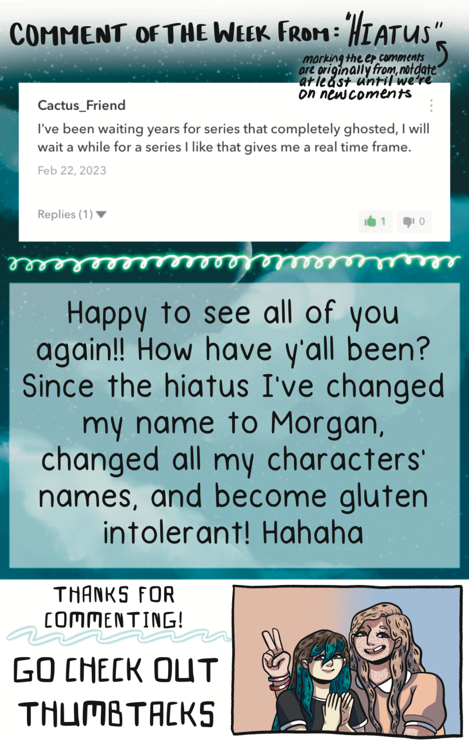 i would copy+paste captions but i did leave all those episodes up for history so,, i guess you'll get life updates through my hiatus even tho these'll be spam posted when the time comes (sorry) HABJSBGRS