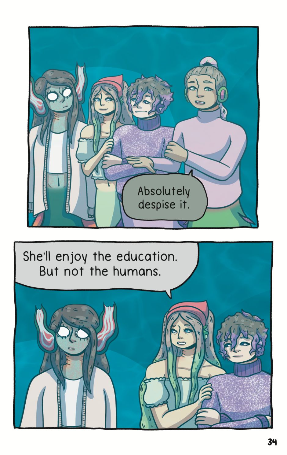 Mermaid meets human—mermaid falls in love, right? That’s how the story normally goes, but for human-hating Lillie, it’s anything but. When she’s chosen (i.e., forced) to go to human high school and remain on the surface for the next four years, she plans to interact with humans as little as possible. …she’s assigned a student council girl a day later because of “worrying, antisocial behavior”. Could humans get any more annoying?