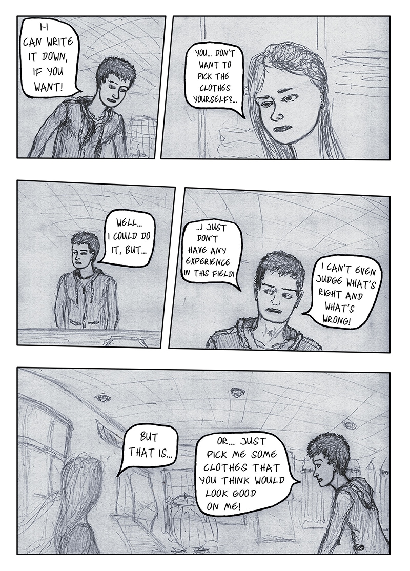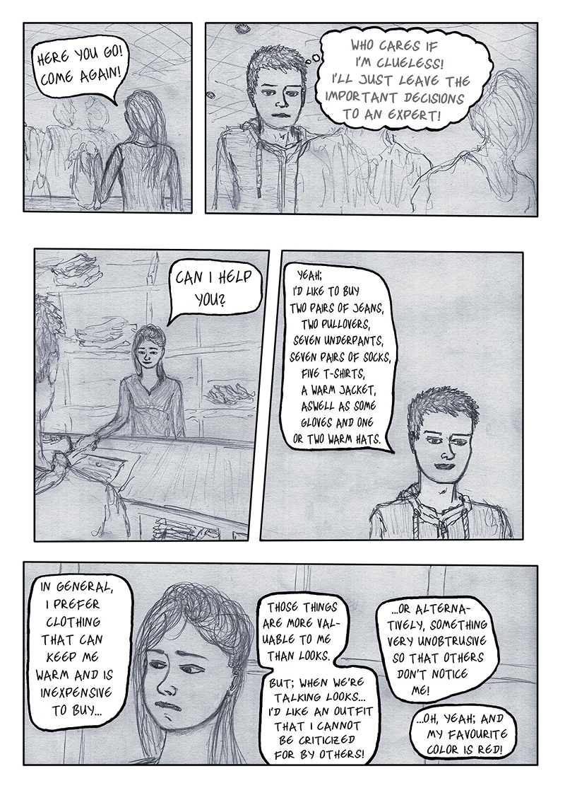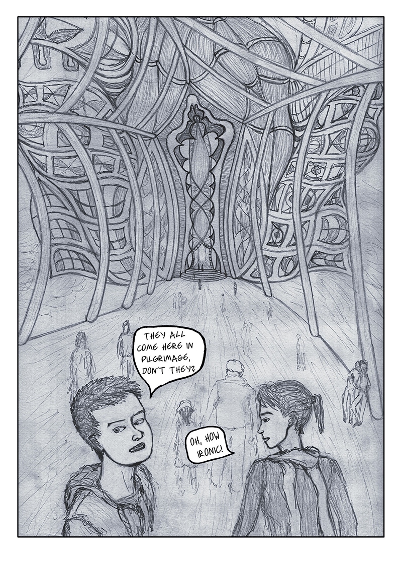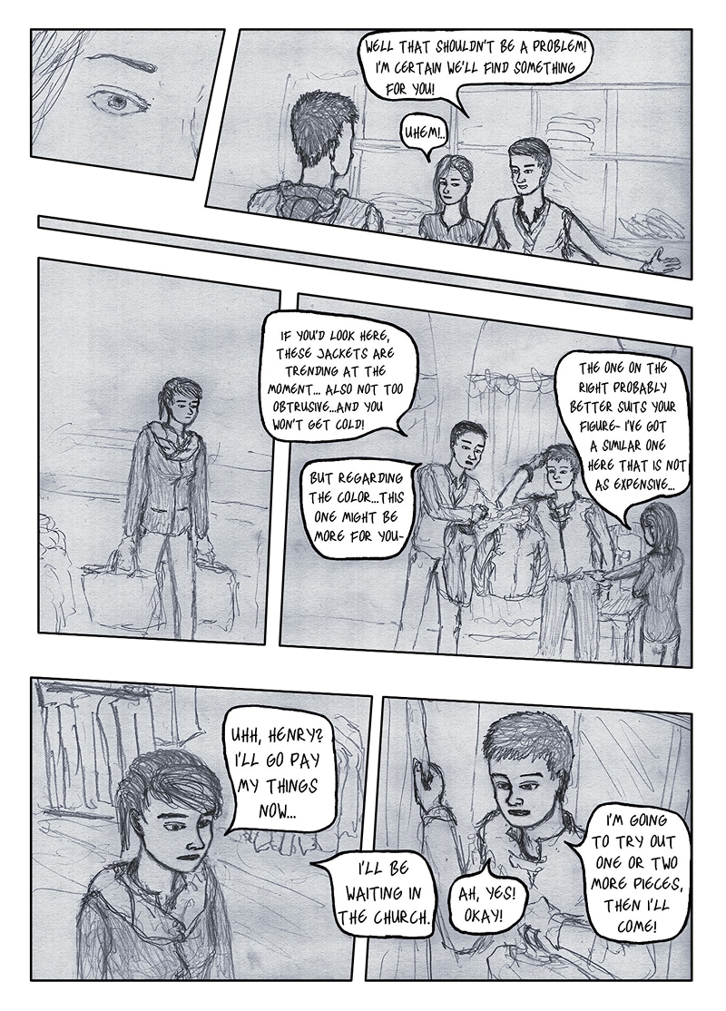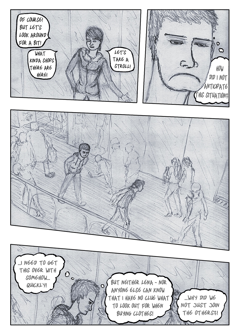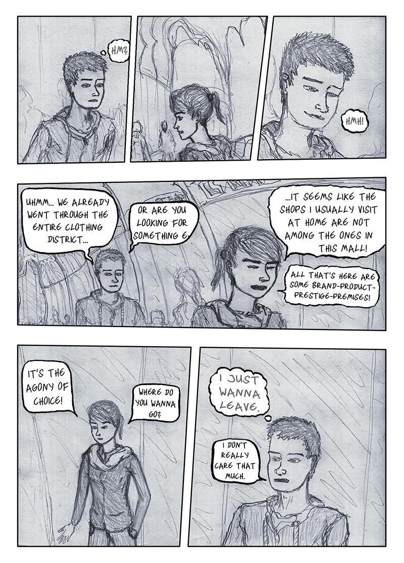 Henry and Lena are trying to find a shop to buy clothes in this restructured postmodern cathedral.