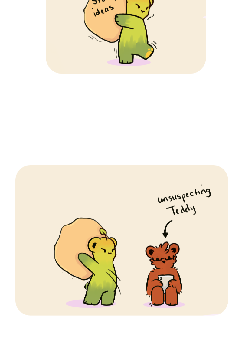 Pear is definitely me in this scenario. I have so many story ideas, I just wanna slam dunk them onto someone's head...