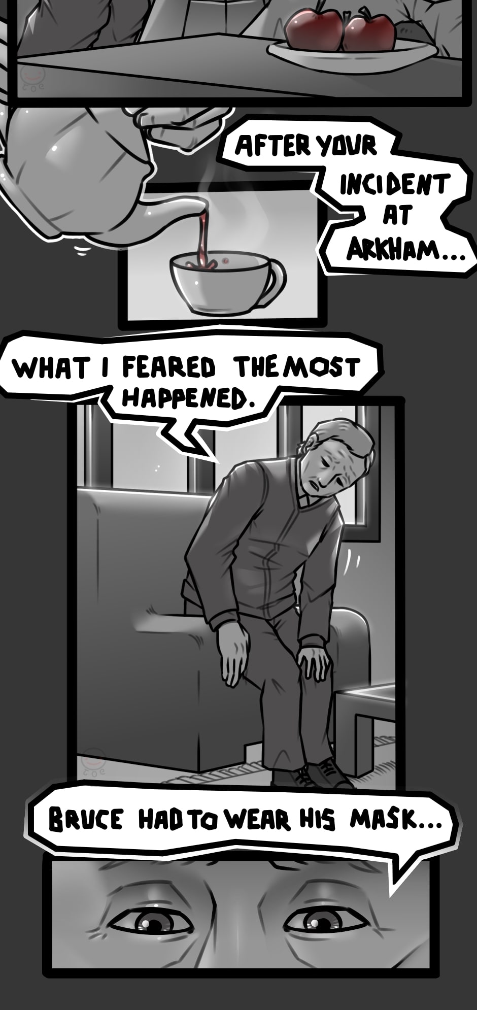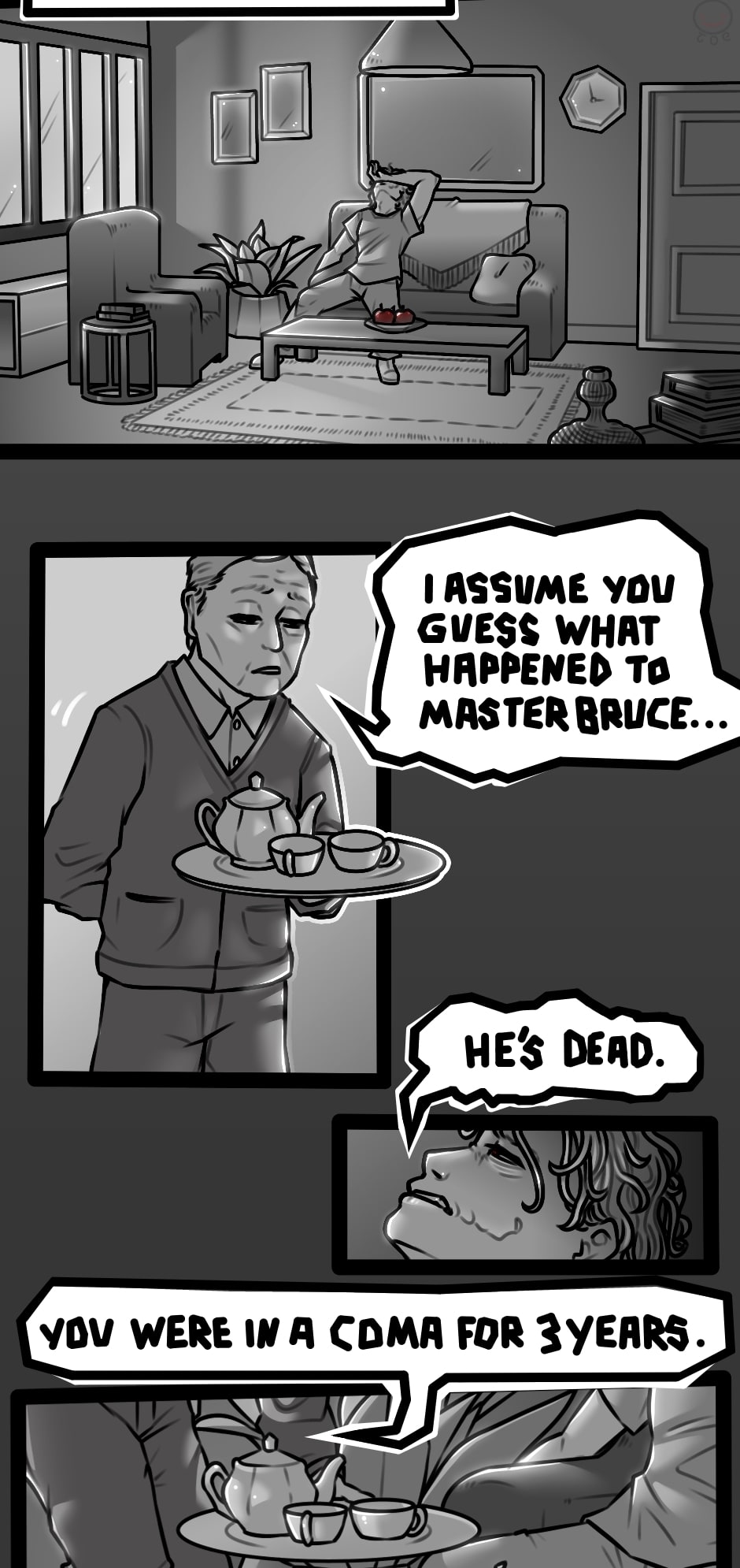 Joker wakes up 2 years after the events of The Dark knight rises. He missed the grand final of his nemesis. What a pain.