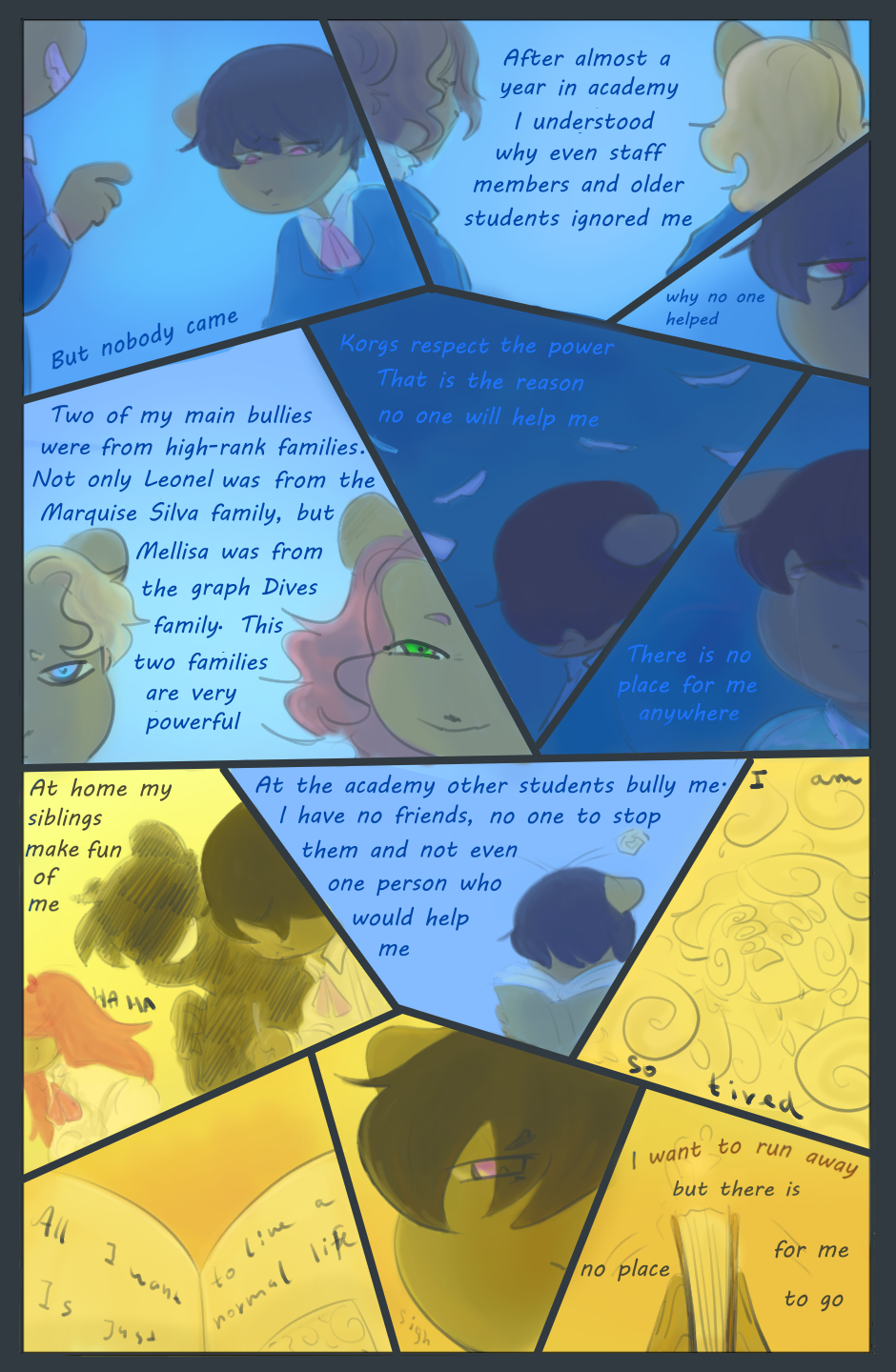 400 years passed since Birdgels, Korgs and Humages were separated from each other by the magic barrier. Magic and other races became closer to fairytales. Our three heroes are the living proof that this idea is wrong. Korg Amuel, Birdgel Elisabell and Humage Reylin are just teenagers living their peaceful life. But one day everything changes. Will our heroes be able to return their calm life? How did they met eachother? Can the lost magic be returned? What adventures, friends and enemies are awaiting for them?