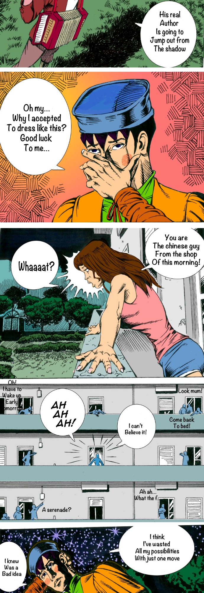 At the beginning of the story this man, Aedo, and his mechanical bird, Cupid, will help a young italo-chinese man to conquer the heart of Cornelia.