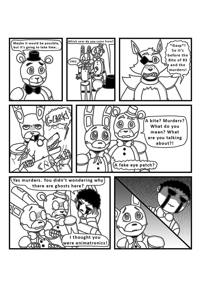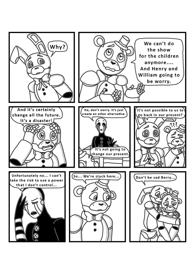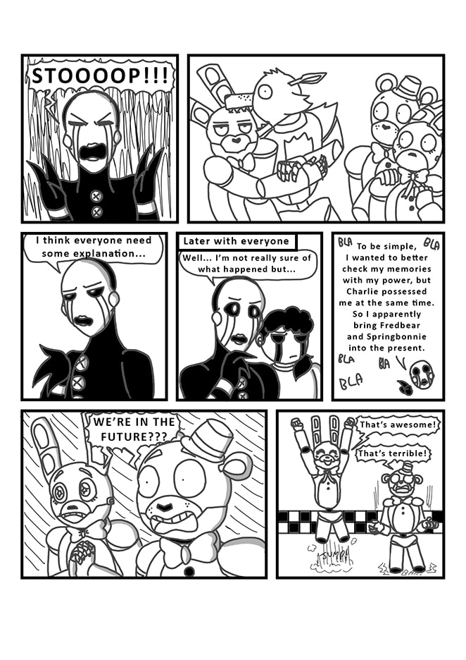 Puppet, unsure of what really happened in the past, decides to take a better look at his memories with his powers. But by accident, he will bring Fredbear and Springbonnie into the present. Very dark secrets and realities will then be revealed... As well as dangerous ennemies.
