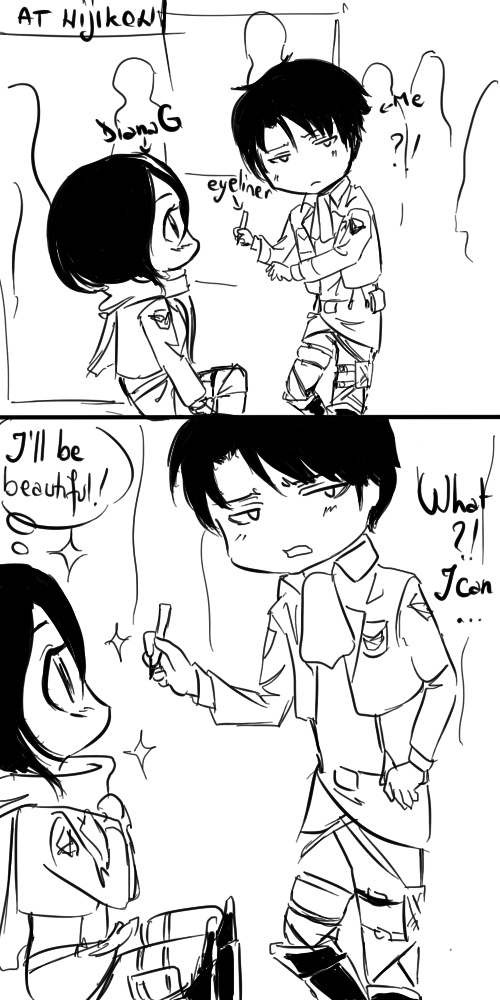 NIJIKON is an anime festival in my country. I went for the first time at that event cosplayed as Levi and, of course, I had my squad. She was one of them, I was doing her Mikasa makeup. DianaG --> http://tapastic.com/gaodiana23