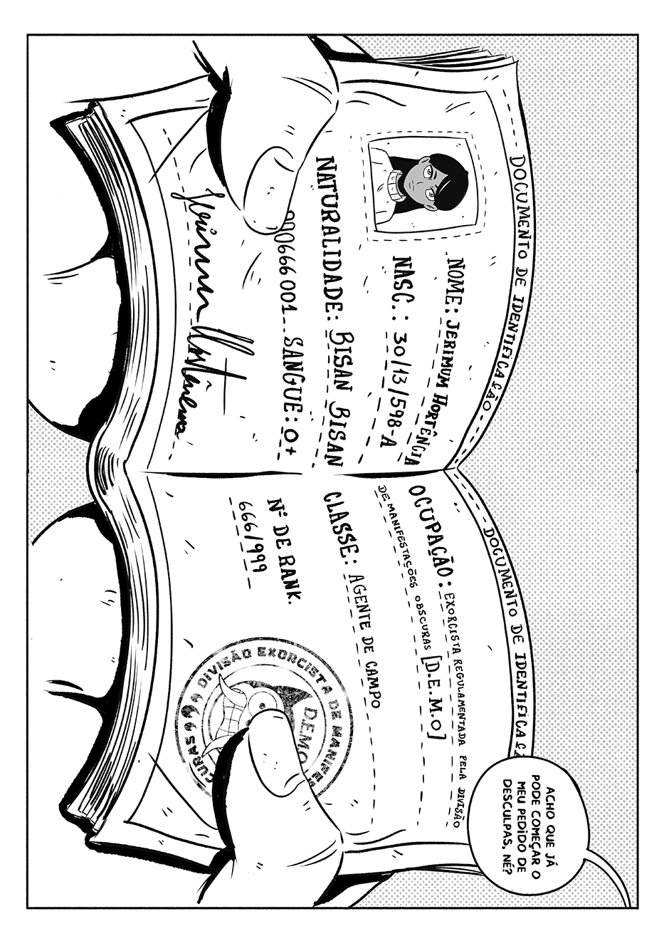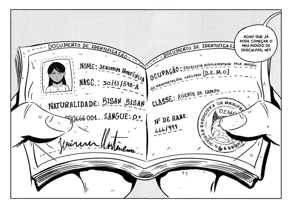 Numa fusão de aperreio e liseira, Jerimum uniu o não tão útil ao desagradável. Virou uma exorcista assalariada e agora ganha a vida expulsando a capirotagem nos quatro cantos do mundo. Junto com Baião, seu parceiro abestaiado, ela vai descer o sarrafo em tudo que é caramunhão para pagar as contas (e a merenda, se sobrar dinheiro).