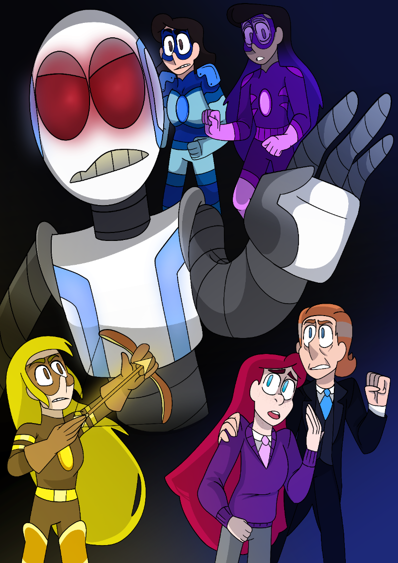 Hey y'all, and here's the cover for Chapter 2! The heroes are going on their first true mission, and they meet for the first time at school. And I promise you, shenanigans will ensue. See you next Friday!