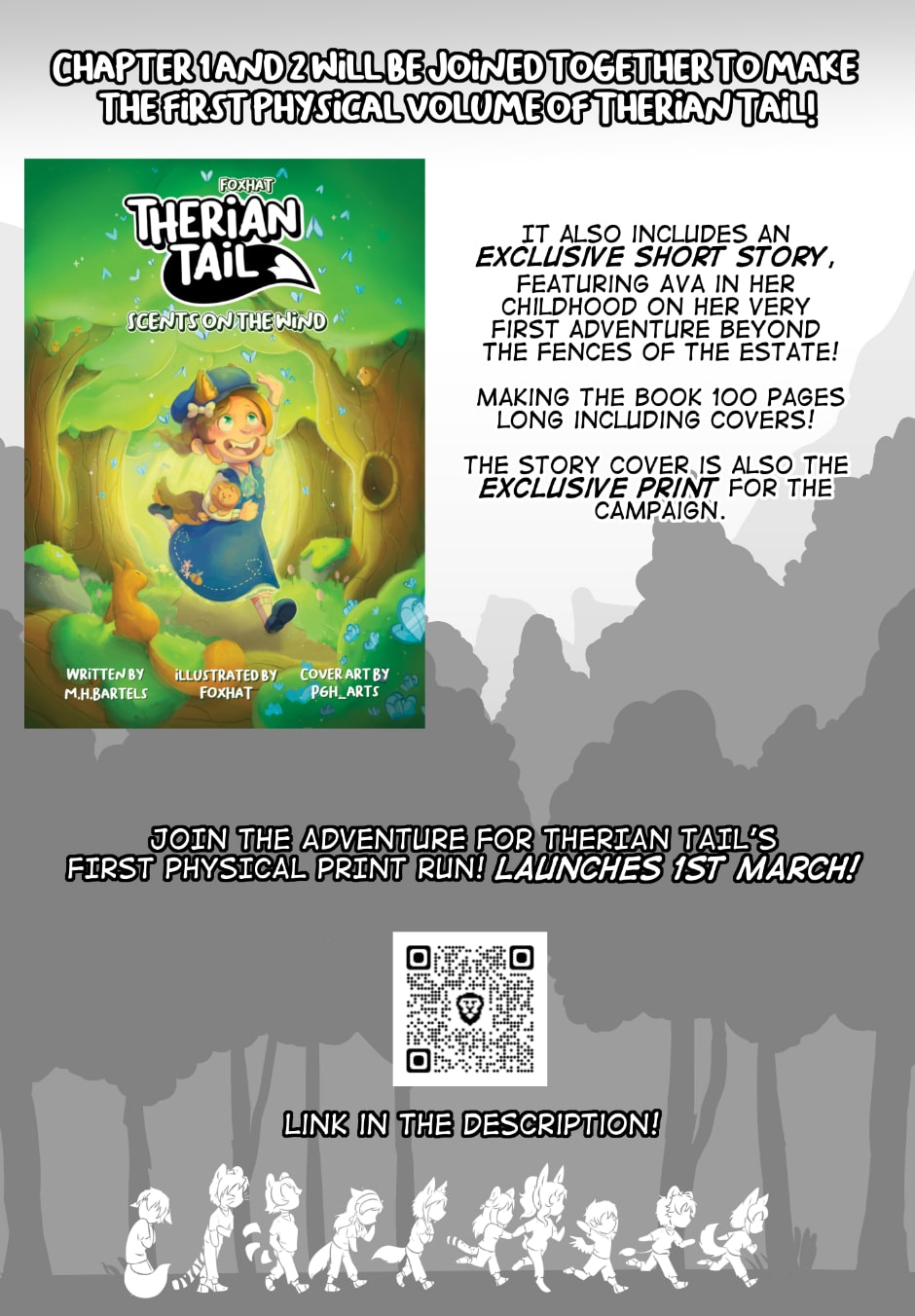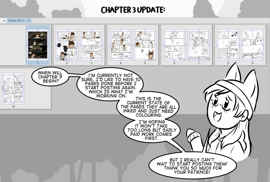I'm very happy to announce that the prelaunch page for Therian Tail's Kickstarter is now Live!! https://www.kickstarter.com/projects/foxhat/therian-tail It launches on the 1st March and you'll be able to get chapter 1 + 2 in one complete book! I hope you're all looking forward to it <3 I am also working on Chapter 3, it's getting there slowly but surely :) If you have any questions, feel free to comment them below and I'll answer <3