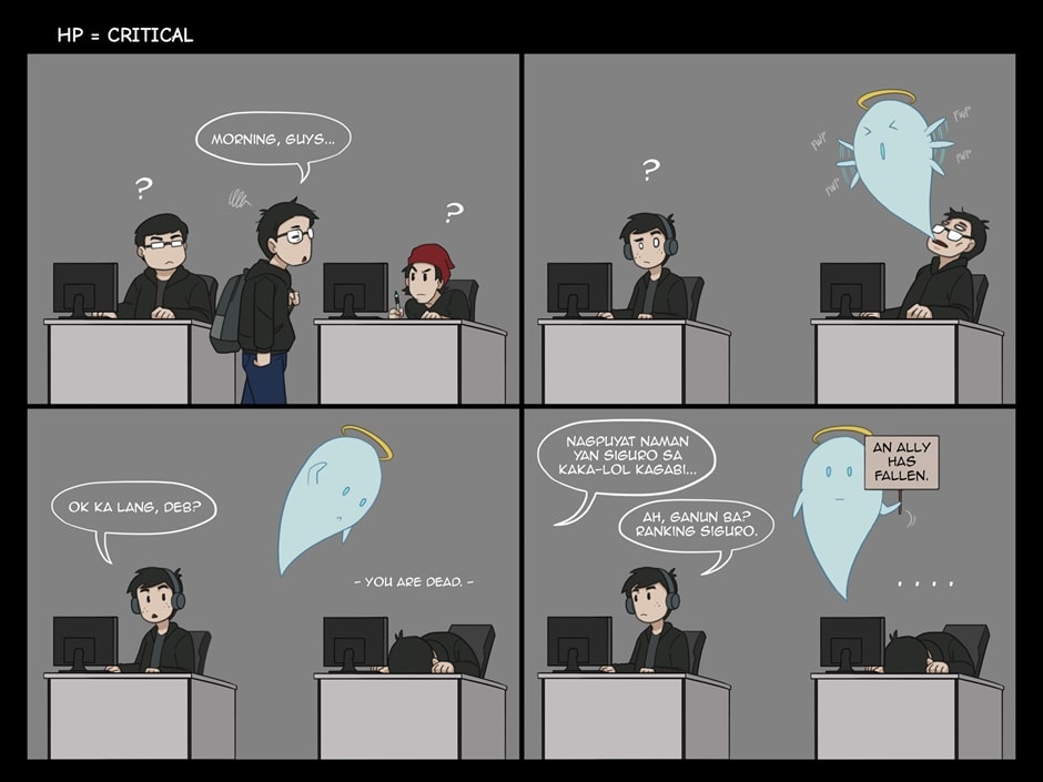 Comic 010 - HP = Critical Smiles + Ganaps is a daily life "Ganaps (happenings)" of an office setup animators and designers. #office #funny #comedy #daily_life #animation_studio #animators_life #designers_life #pinoy #tagalog #filipino