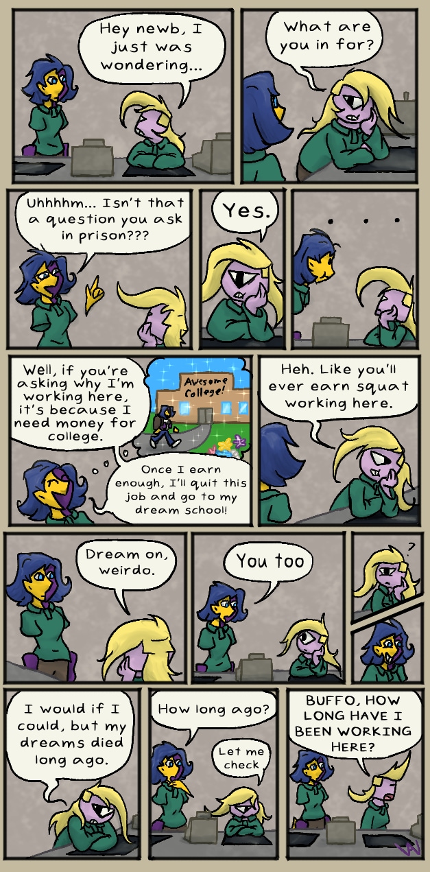 In between larger installments, I will post these smaller comics of mostly just little gags or character moments. This particular one was basically a scene I couldn't fit into Welcome To The Show without messing up the flow I wanted.